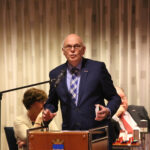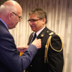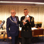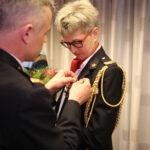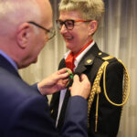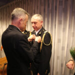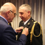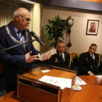 Burgemeester Evers reikte tijdens de jaarvergadering de versierselen uit behorende bij de benoeming tot Lid in de Orde van Oranje-Nassau aan John Scheffers (55 jaar).