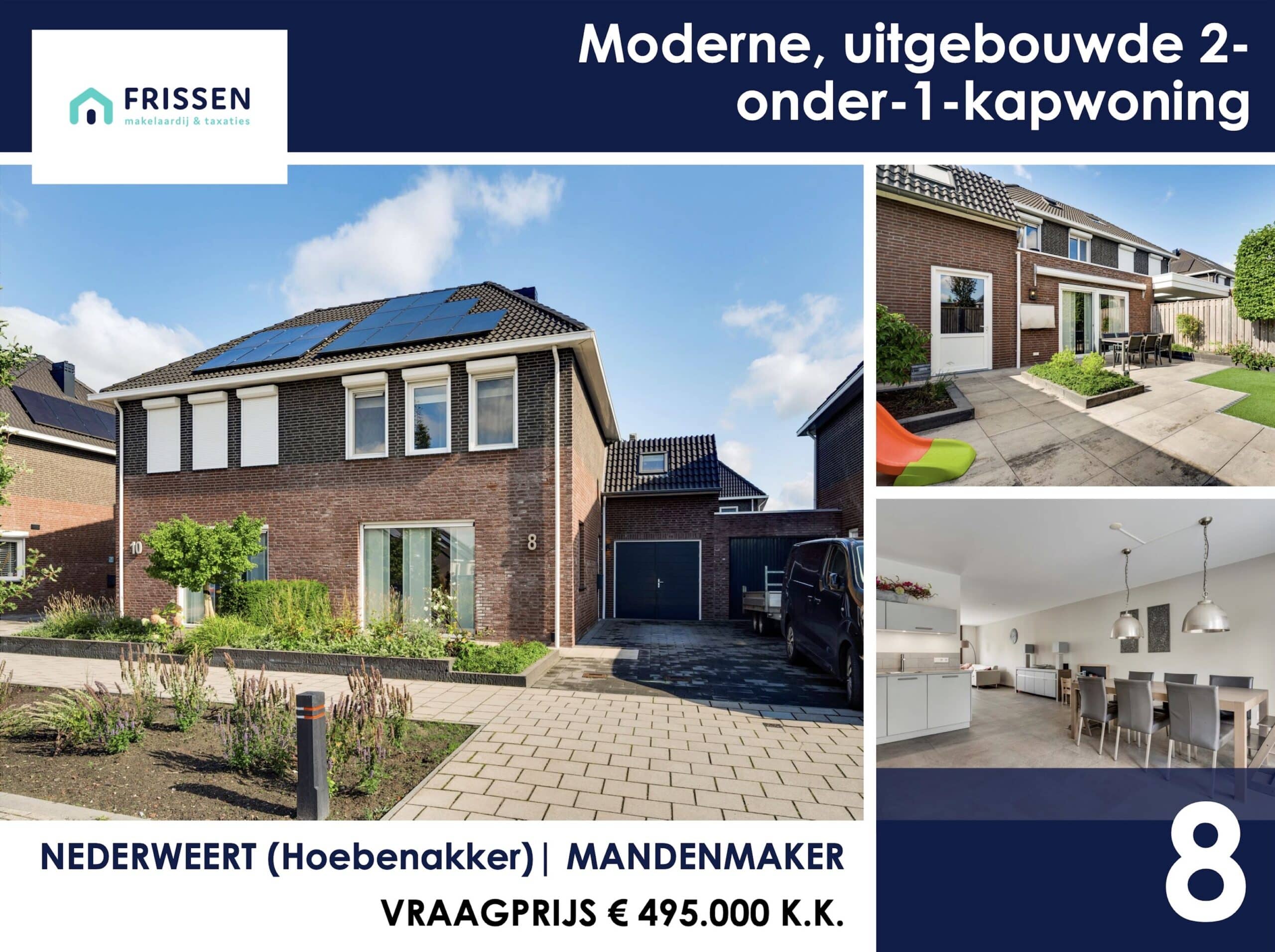 Ben je op zoek naar een instapklare woning in een jonge, kindvriendelijke woonwijk? Deze prachtige 2-onder-1-kapwoning, gelegen in de populaire nieuwbouwwijk Hoebenakker (Nederweert), biedt alles wat je zoekt.