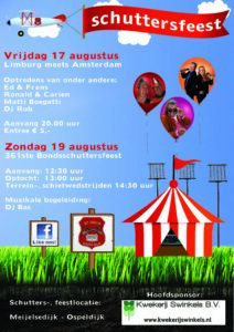 Sint Odilia Ospeldijk organiseert op zondag 19 augustus het 361e bondsschuttersfeest! Aanvang vanaf 12:30 uur. De optocht begint om 13:00 uur en de schietwedstrijden beginnen om 14:30 uur onder muzikale begeleiding van Dj Bas. Om het feestweekend goed te beginnen starten ze op vrijdag 17 augustus vanaf 20:00 uur met een feestavond met optredens van onder andere: Ed & Frans, Ronald & Carien en Matti Boegatti! De rest van de avond zal Dj Rob de avond opvullen. De avond heeft als thema Limburg meets Amsterdam!