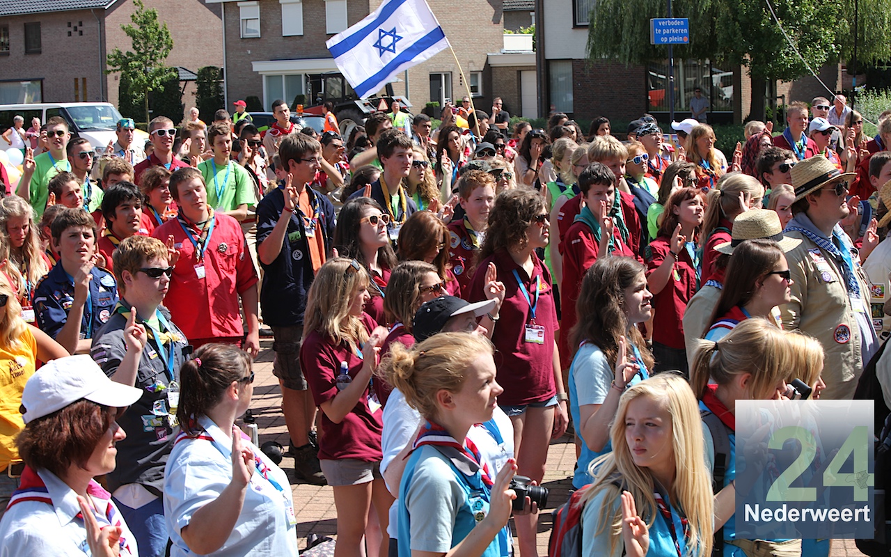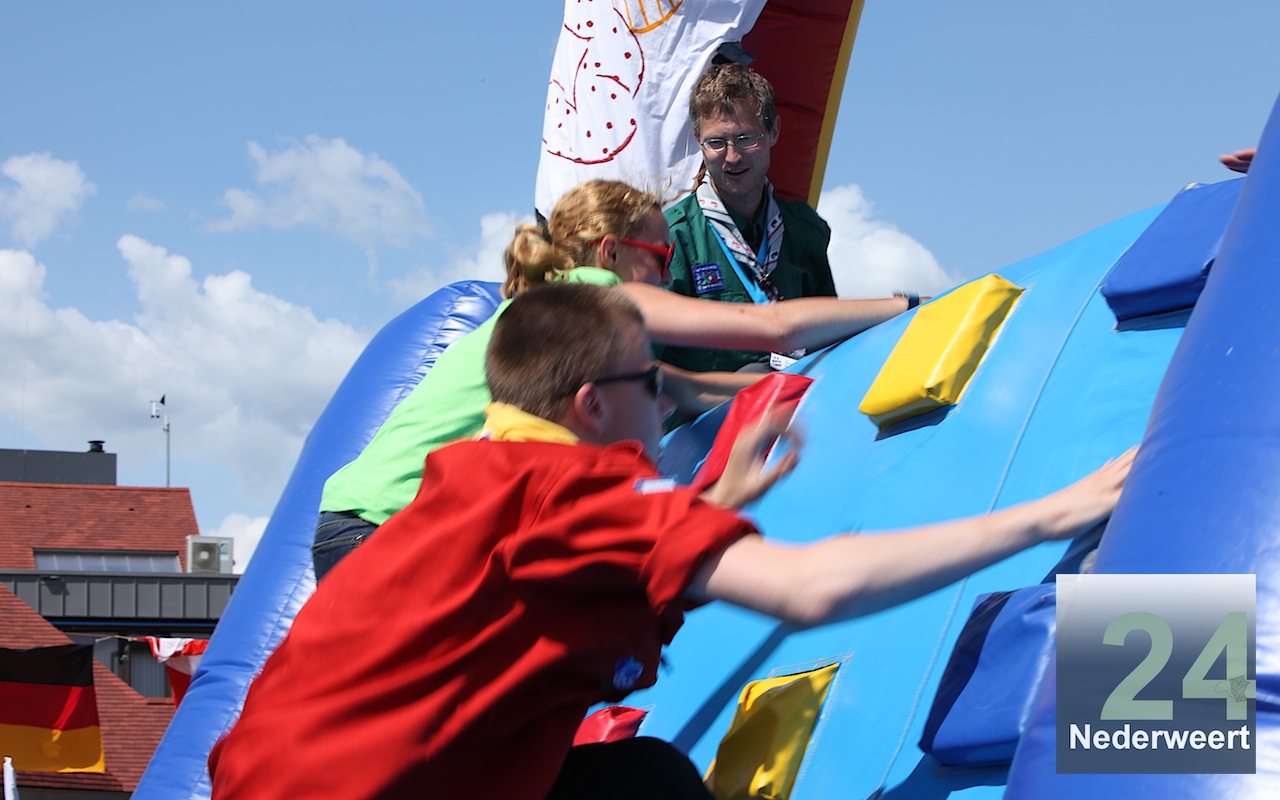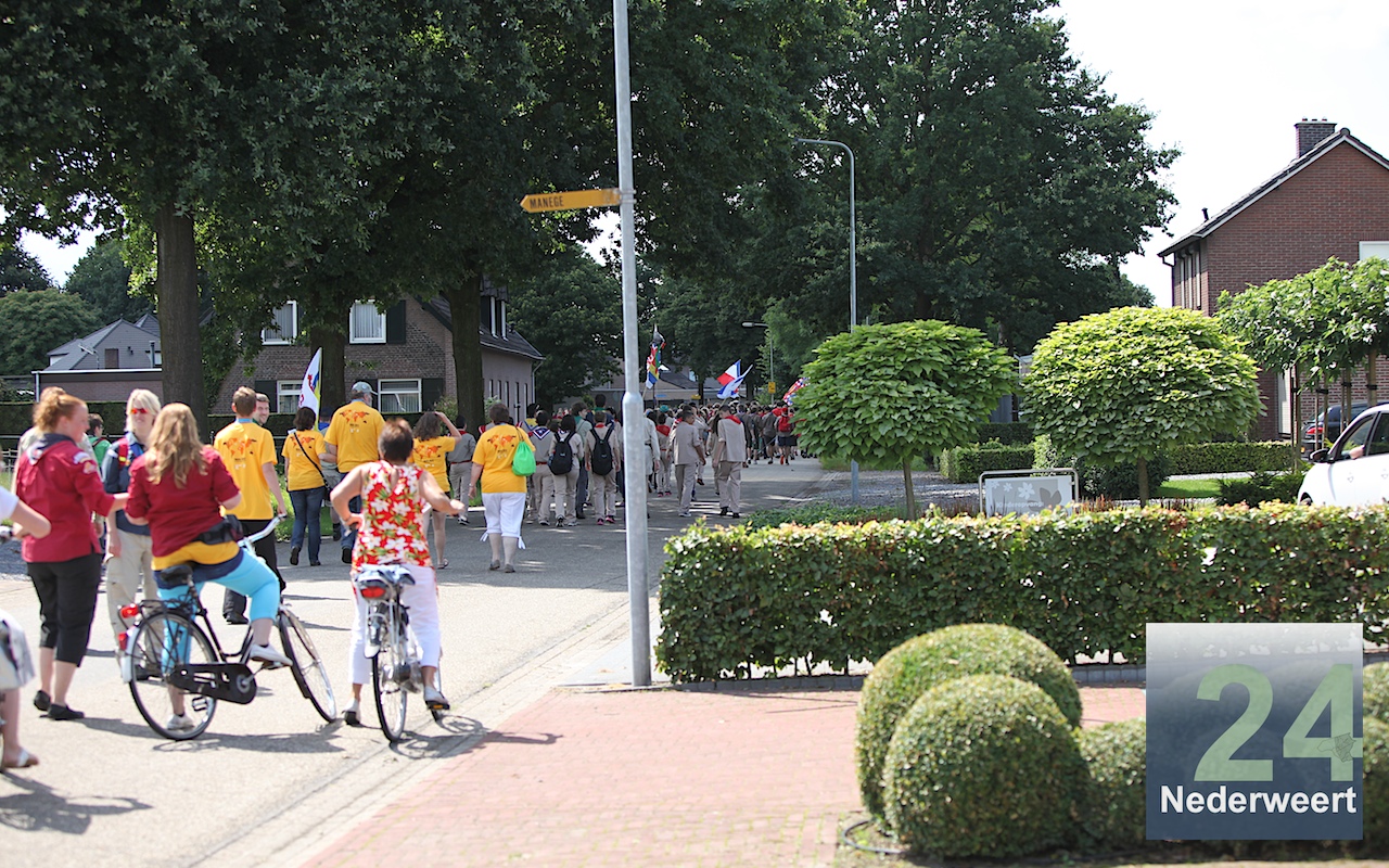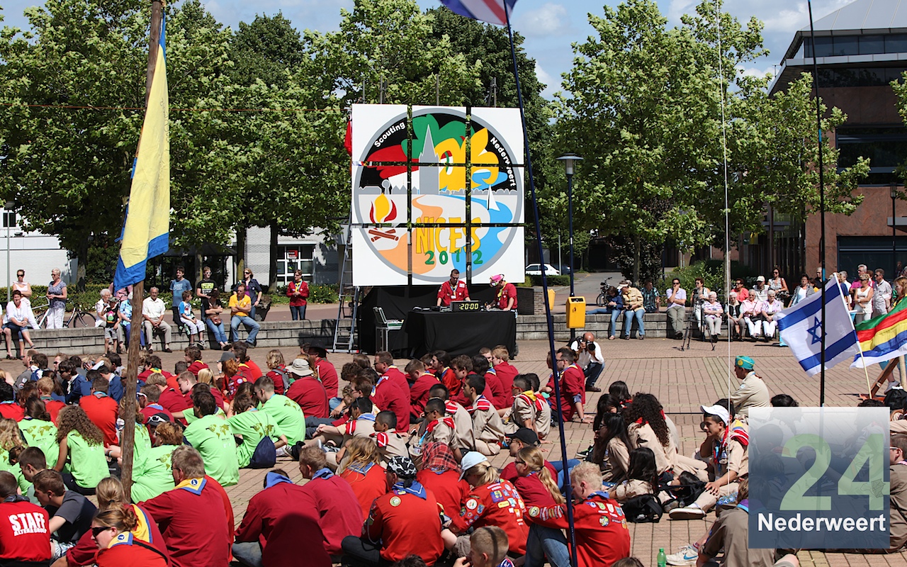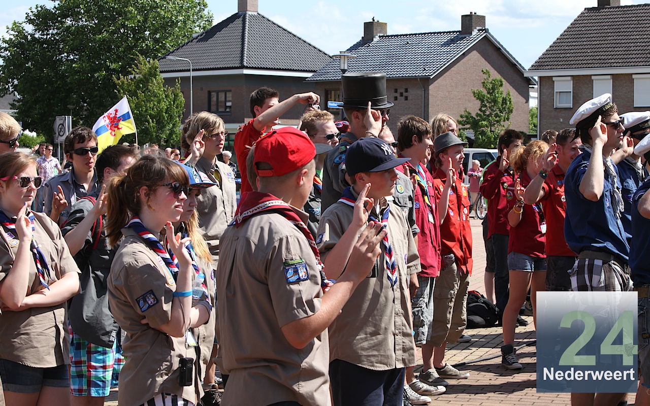 Alle op dit moment aanwezige scouts hadden zich verzameld op het Raadhuisplein voor het gemeentehuis van Nederweert. Na aanmoedigende woorden moesten alle deelnemers over een stormbaan om een echt Ni-jwieërts stukje vlaai te bemachtigen. Daarna ging de hele stoet weer terug naar het NICES 2012 kamp bij manege de Kraal.