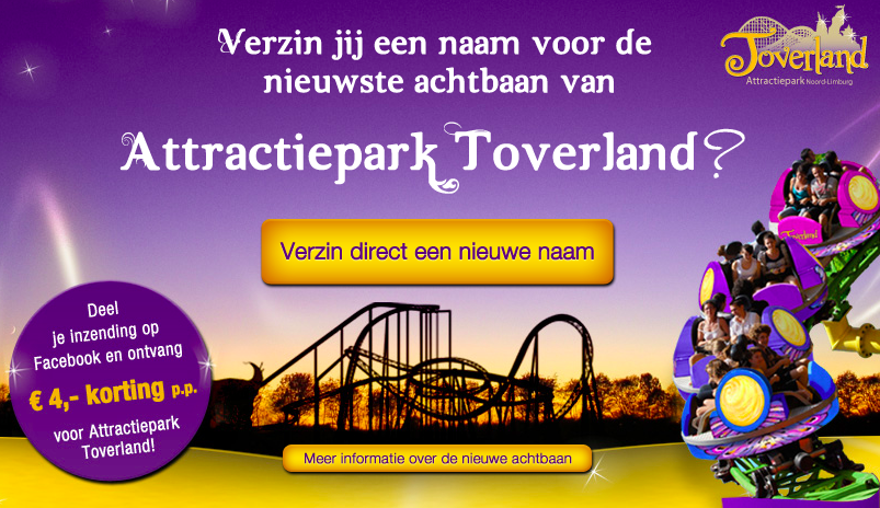 Attractiepark Toverland in Sevenum opent 1 oktober een nieuwe achtbaan en Toverland heeft nog geen idee hoe ze de nieuwste achtbaan gaan noemen. Ze roepen daarom iedereen via Facebook op om een naam te verzinnen en in te sturen.