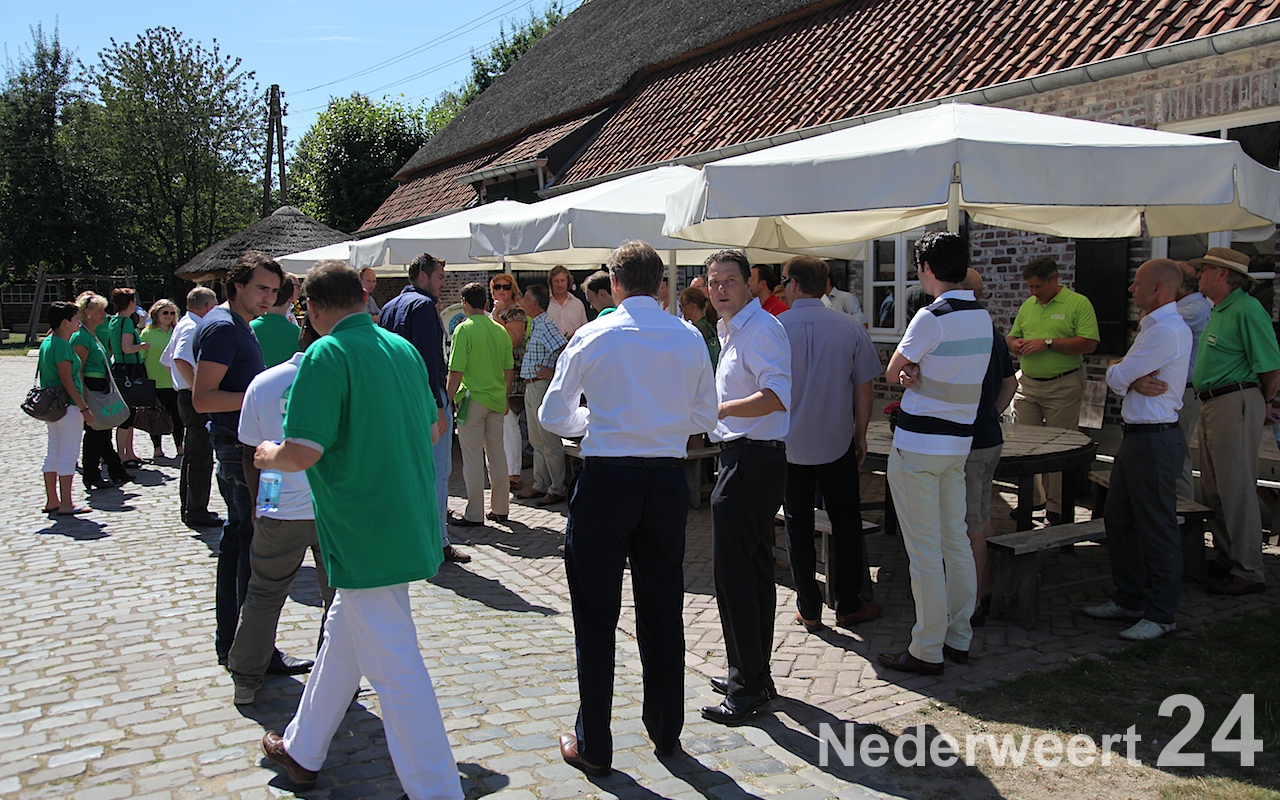 Peter Willkens, voorzitter van Eynderhoof, en Hubert Mackus, bijna CDA-wethouder van Nederweert, verwelkomden het gezelschap namens het Eynderhoof en nodigden iedereen uit voor een heerlijk bourgondische lunch met balkenbrij, brood en stroop. Buma schoof aan bij verschillende Nederweerter ondernemers om kennis te maken. Na een korte gedachtewisseling over de lokale politiek en het ondernemersklimaat kreeg het hele gezelschap een rondleiding op Eynderhoof. Hierbij werd natuurlijk stilgestaan bij de problemen rondom de Tiendschuur, waar inmiddels ook politiek Den Haag ruimschoots van op de hoogte is door de inspanningen van Raymond Knops. Op papier” is er een stankcirkel waardoor de stroopfabriek al is verplaatst en herbouw van de Tiendschuur niet door kan gaan. “We moeten dereguleren” zegt Willekens! Rond 15:00 uur ging Buma met zijn campagneteam verder richting Echt waar ze uitleg kregen over reanimaties.