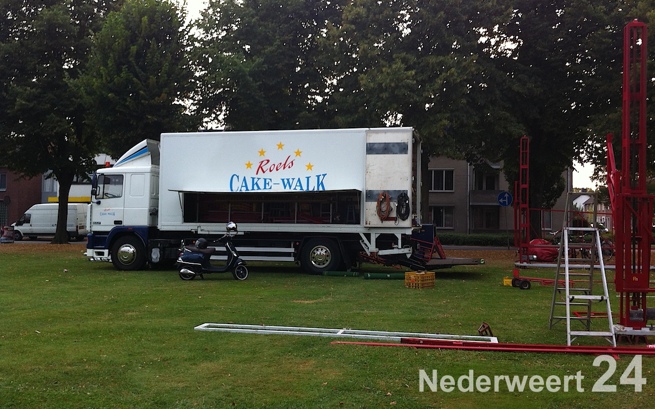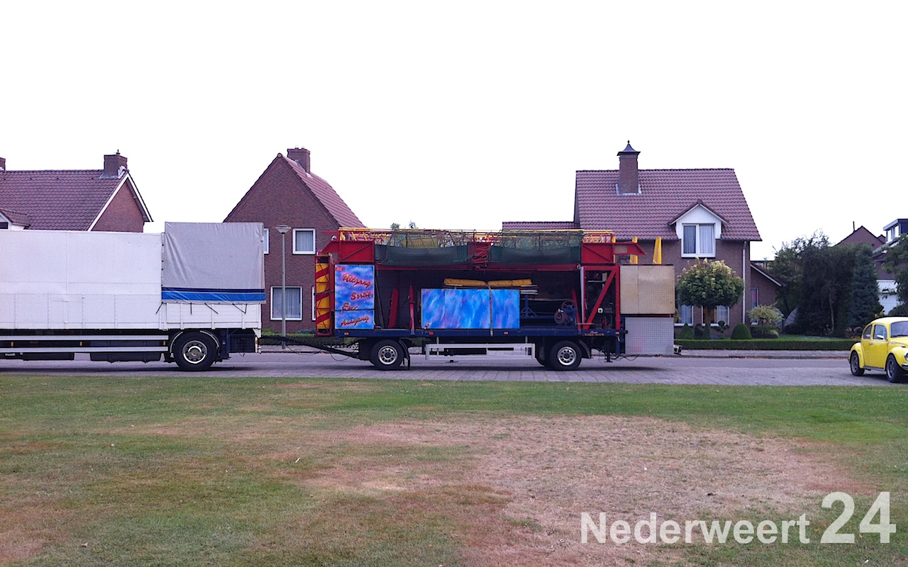 Komend weekend is het kermis in Nederweert en dus zijn de voorbereidingen in volle gang. Op het Rochusplein op Budschop zijn de eerste wagens inmiddels gearriveerd.