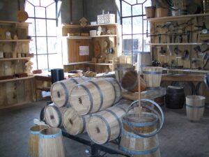 U ziet hoe er op traditionele wijze van stukken hout, duigen worden gemaakt en deze uiteindelijk een vat vormen, waar van alles in kan worden bewaard en mee worden vervoerd.