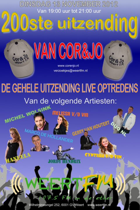 Meer informatie over deze speciale uitzending op de site van WeertFM en op de eigen website van Cor&Jo