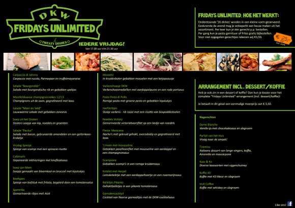 Vanaf 16 november starten ze met Fridays Unlimited, culinair genieten met de keuze uit 20 kleine Dishes. Kijk hier voor meer informatie.