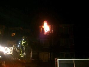 UPDATE: Waarschijnlijk is er een TV ontploft in het appartement. De buren hebben de brandweer gebeld. De bewoonster is veilig uit het appartement gekomen. De naastgelegen woningen hebben rookschade opgelopen. Ondanks dat de brandweer snel ter plaatse was is de woning volledig uitgebrand.
