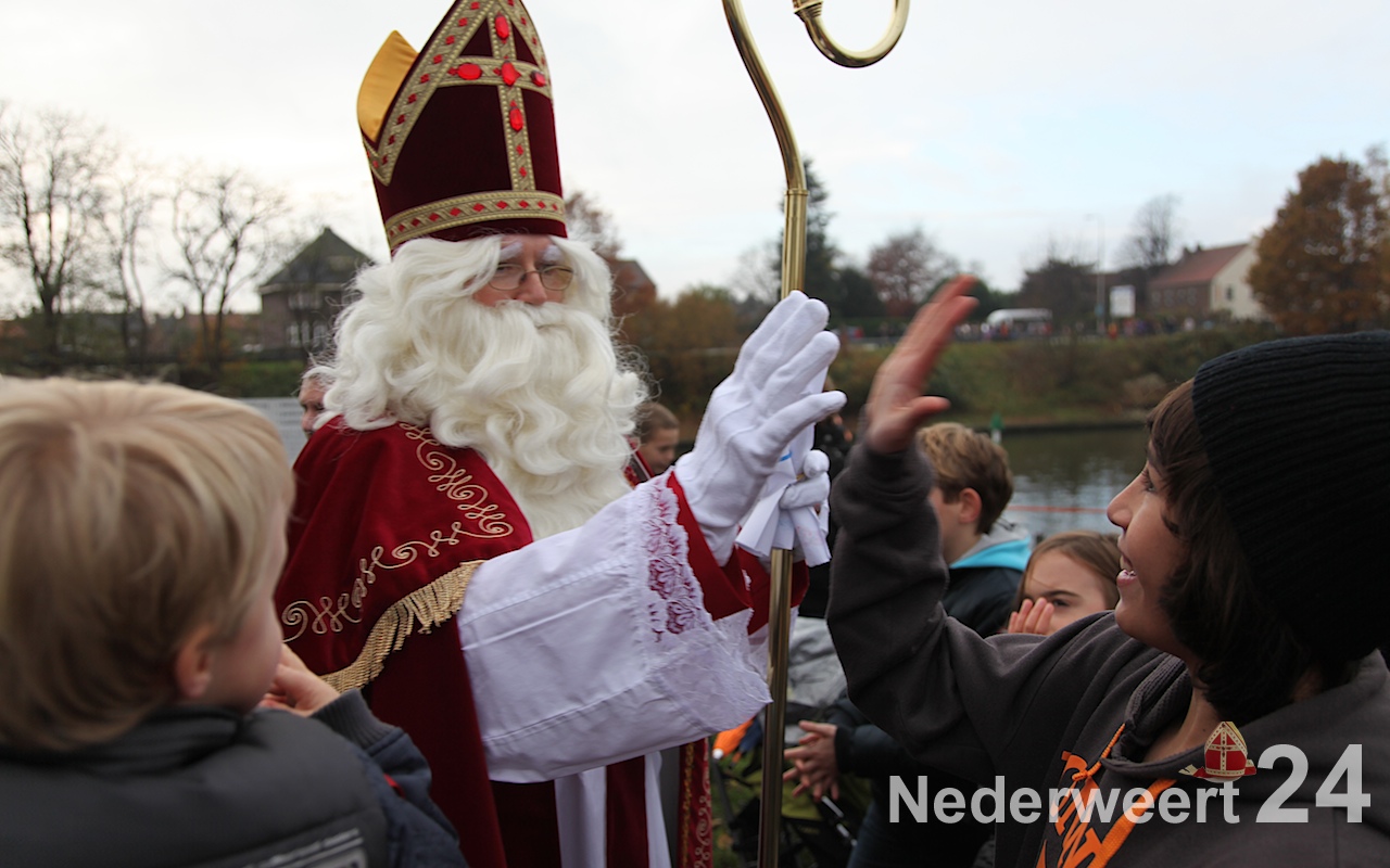Het is maar goed dat alle kinderen zo hard geroepen hebben anders was de boot met Sinterklaas en alle pieten zomaar voorbij gevaren. Iets vertraagd omdat de boot moest draaien, kwam Sinterklaas aan, vergezeld door burgemeester Evers van Nederweert. Ondanks het miezerige weer waren er veel kinderen met papa’s, mama’s opa’s en oma’s komen kijken hoe vier kleine bootjes vol met pieten en één hele grote boot aanmeerden in de passantenhaven bij Brug 15.
