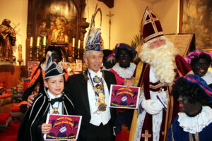 De beiden Vorsten vroegen de Sint en zijn Pieten ook goed te kijken of er op de verlanglijstjes van de kinderen een kaartje voor de Boonte Femiêliemiddig wordt gevraagd en bij de pappa’s, mamma’s, opa’s en oma’s natuurlijk voor de Boonte Aovendje.