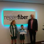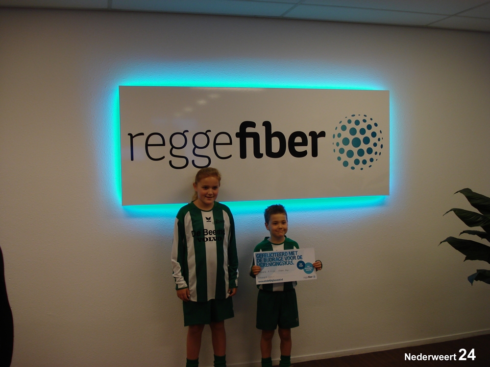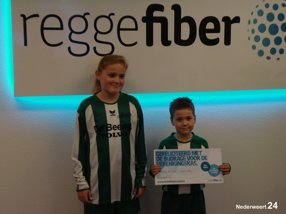 Vandaag werd de balans opgemaakt en kon de jeugd van Eindse Boys een mooi bedrag van € 770.00 in ontvangst nemen. In de winkel van Reggefiber aan de Brugstraat werd vanmiddag de cheque aan 2 jeugdleden van de voetbalclub uit Nederweert Eind aangeboden.