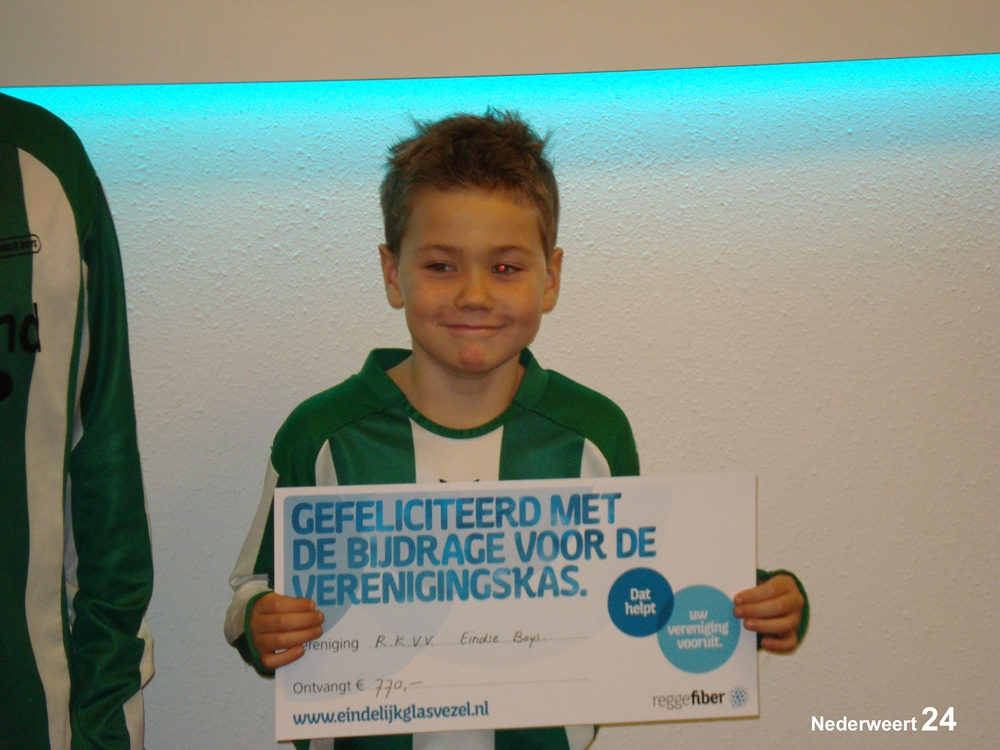 In juni van dit jaar heeft Eindse Boys afspraken gemaakt met Reggefiber over het werven van aansluitingen op het super snelle glasvezelnetwerk in Nederweert. Van iedere aanmelding die via Eindse Boys bij Reggefiber binnen zou komen werd een vaste vergoeding in het vooruitzicht gesteld. De opbrengst zou dan bestemd zijn voor de jeugd van Eindse Boys.
