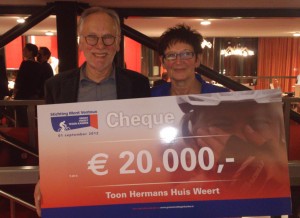 De stichting Mont Ventoux heeft hiervan 60% geschonken aan het Koningin Wilhelmina Fonds (KWF) voor onderzoek naar kinderoncologie. Daarnaast schenkt de Stichting 40% van de opbrengst aan lokale doelen die zich inzetten voor mensen met kanker. Teamcaptain Francoise Saes, spinning instructrice bij MyHealthclub, sportschool in Weert, heeft met succes het Toon Hermans Huis Weert voorgedragen als lokaal doel. Zij mocht samen met Frans Brüll, bestuurslid, een cheque van maar liefst €20.000 in ontvangst nemen. Een geweldige steun in de rug voor het Huis dat volledig afhankelijk is van donaties, bijdragen en de inzet van vrijwilligers.