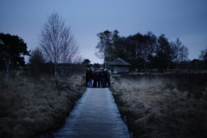 Je loopt in het spoor van een peelgids die tijdens de wandelingen uitleg geeft over het ontstaan van de peel.