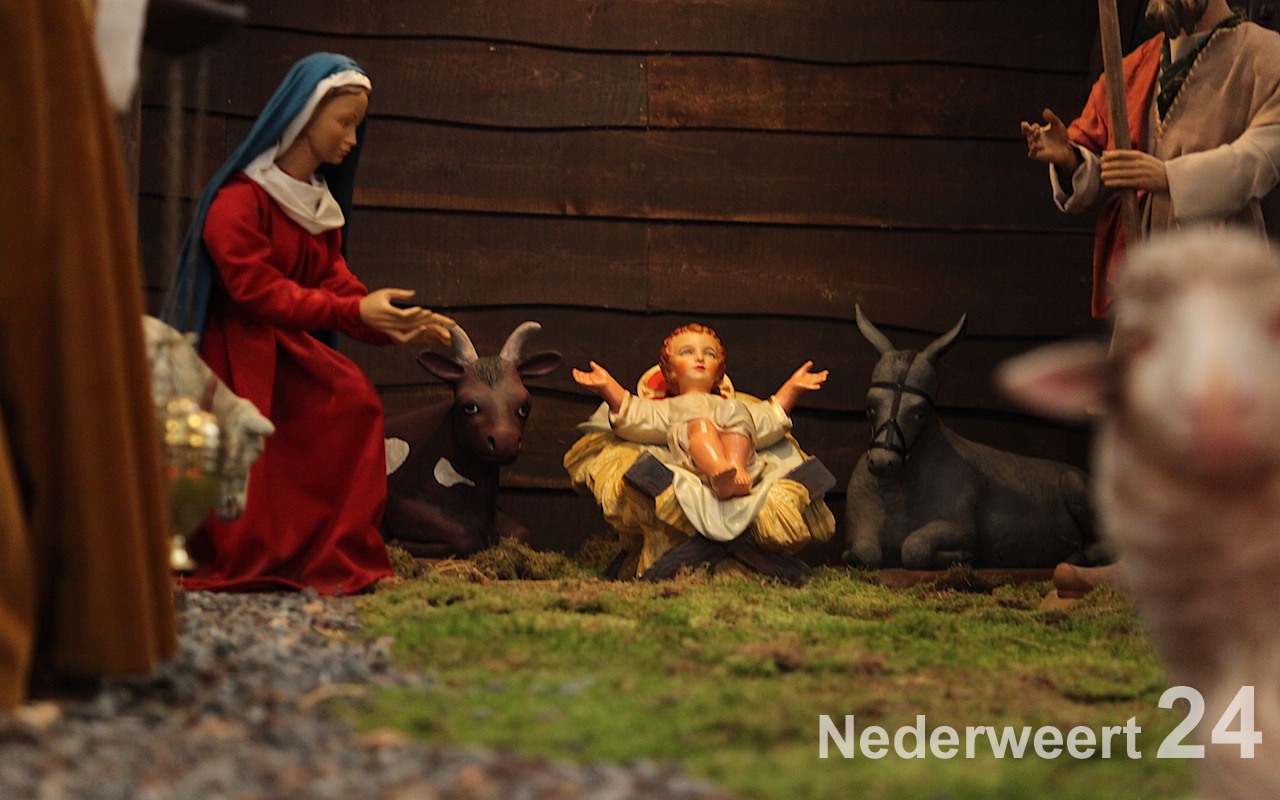 Tijdens de gezinsmis in de St. Lambertuskerk van Nederweert ging zaterdagavond om 19.00 uur het licht in de kerststal aan. Tijdens de avondmis heeft de pastoor het kindje in de kribbe gelegd en was de kerststal compleet. Niet zomaar een kerststal maar een kerststal met bewegende beelden. Kerstmis is begonnen.