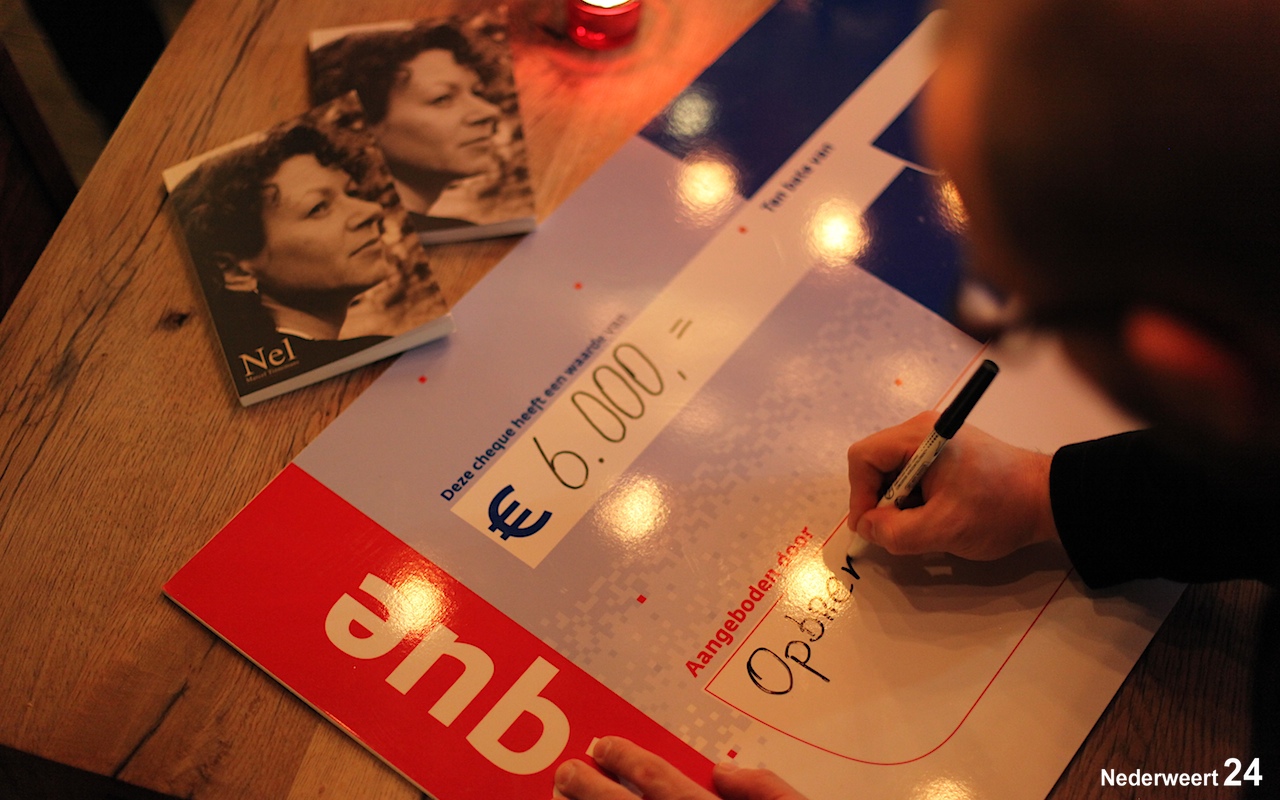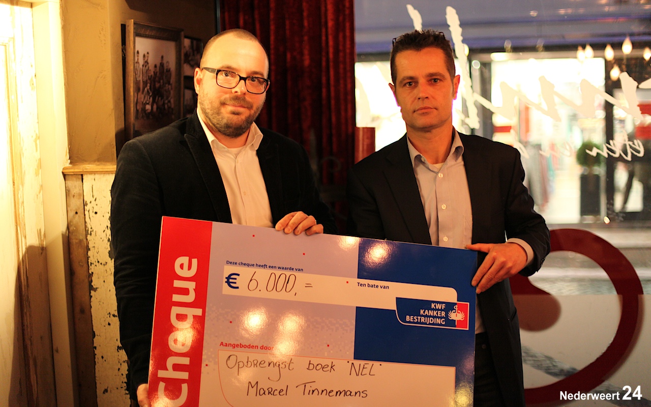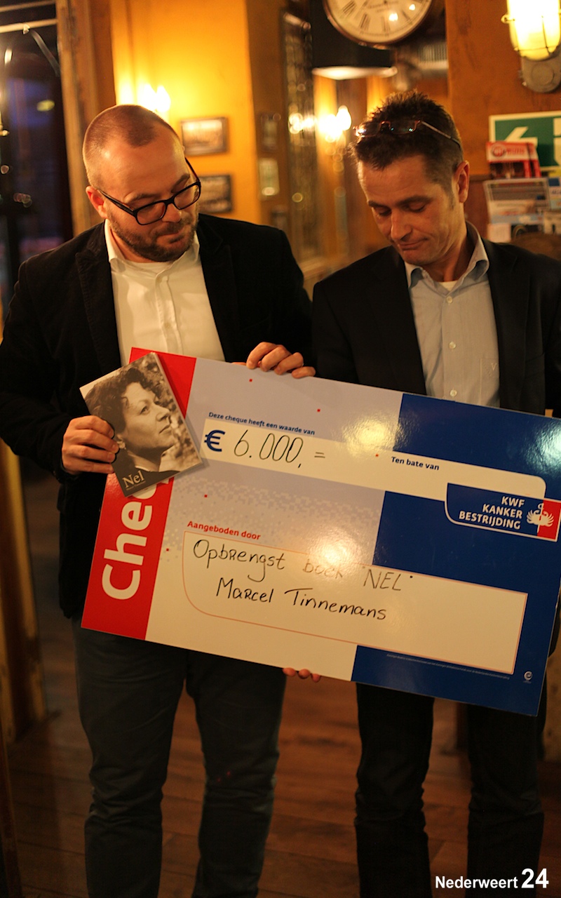 Op donderdag 17 januari heeft schrijver Marcel Tinnemans een bedrag van € 6000,- kunnen overhandigen aan KWF Kankerbestrijding. Het bedrag is de opbrengst van het boek Nel dat hij schreef na het overlijden van zijn vrouw Nel Scheffers. De cheque werd in ontvangst genomen door Dave Snellen, regiocoördinator Zuid-Oost Nederland van KWF Kankerbestrijding.
