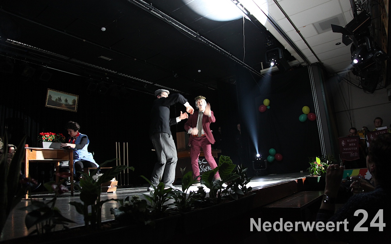 Met de klanken van de buutemars werd het podium vrij gemaakt voor de artiesten van de avond. De microfoon werd overgedragen aan Peter Stultjens die de avond verder in goede banen zou gaan leiden en de muzikale begeleiding was in handen van Hofkapel Klein mèr Neugter.