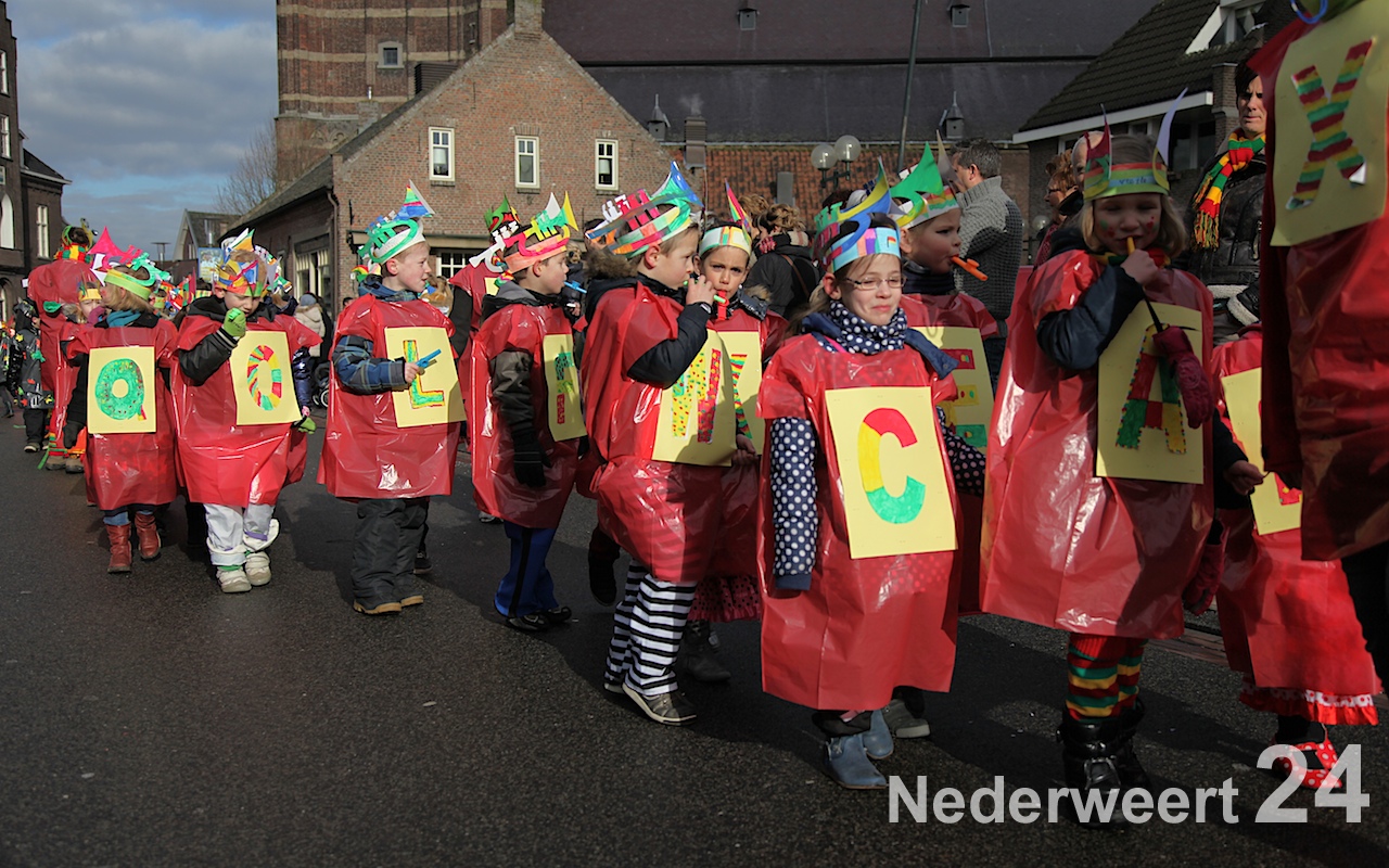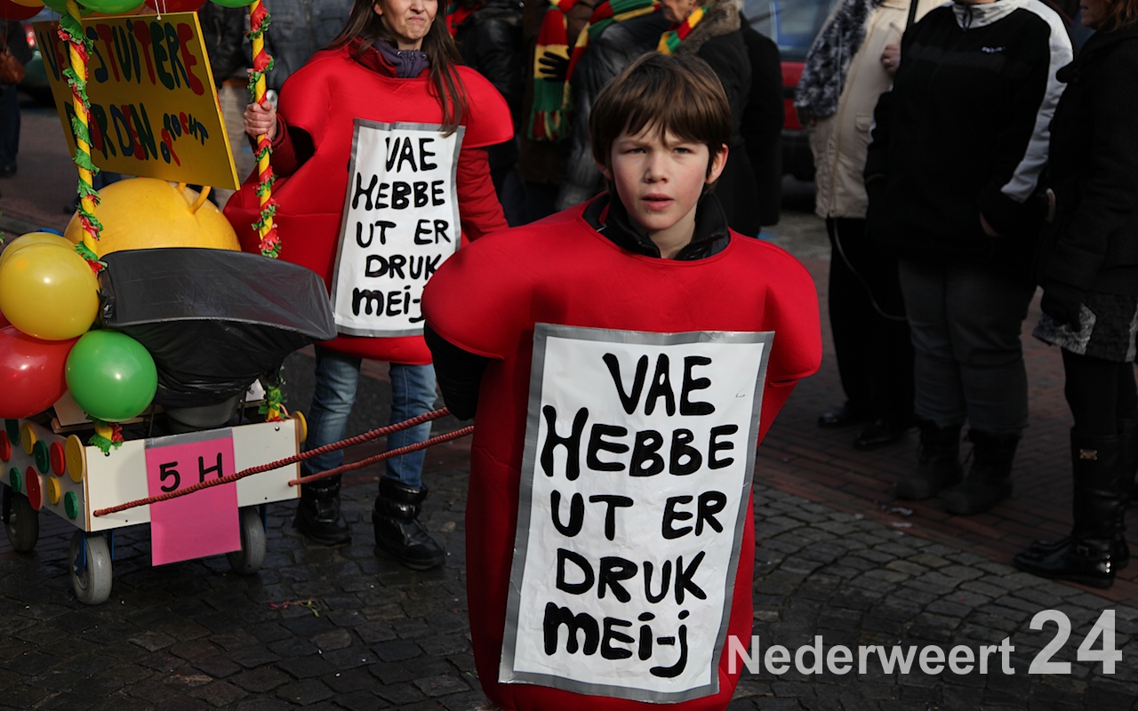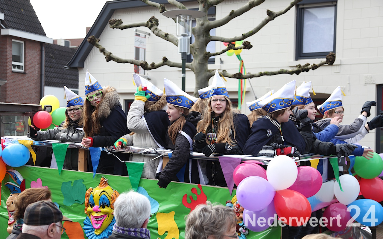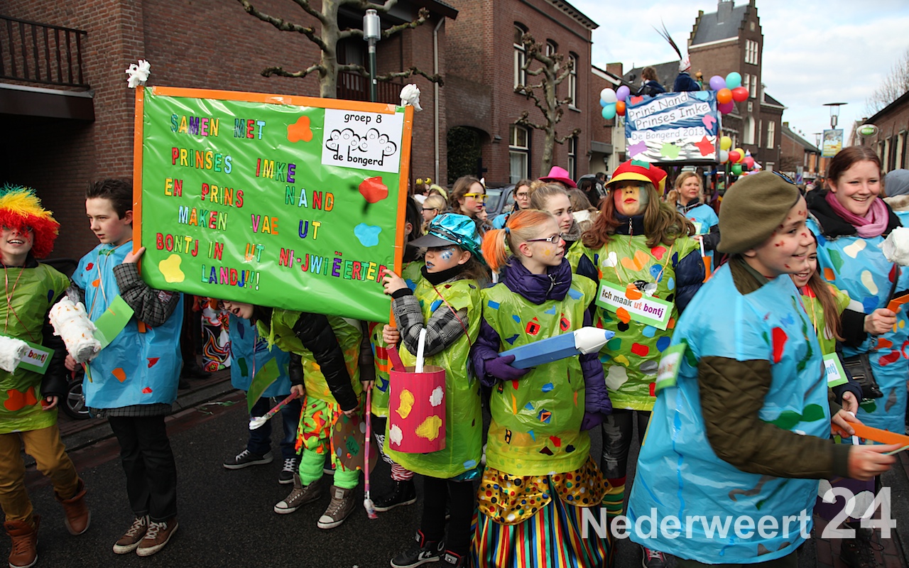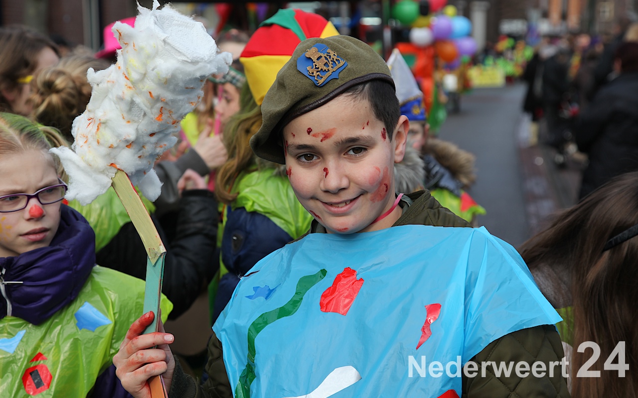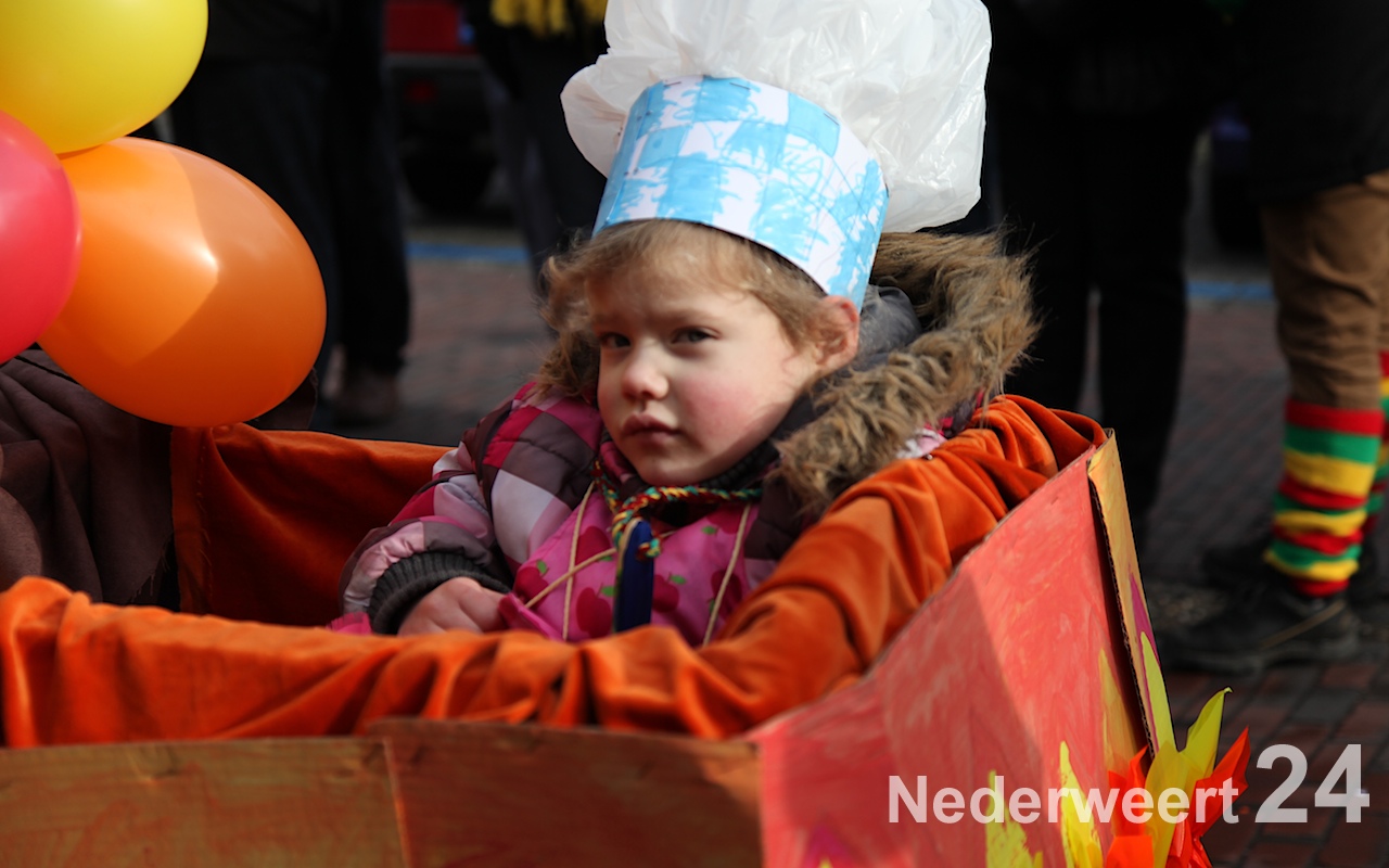 Alle kinderen van de basisscholen van Nederweert; BS Budschop, BS de Bongerd, BS de Klimop en BS de Kerneel, zijn vanmorgen door de straten van Nederweert getrokken. De kinderen hadden de prachtigste creaties gemaakt. Grote wagens voor de prinsenparen, kleine wagens voor de peuters en grote groepen uitgedost in prachtige kleuren.