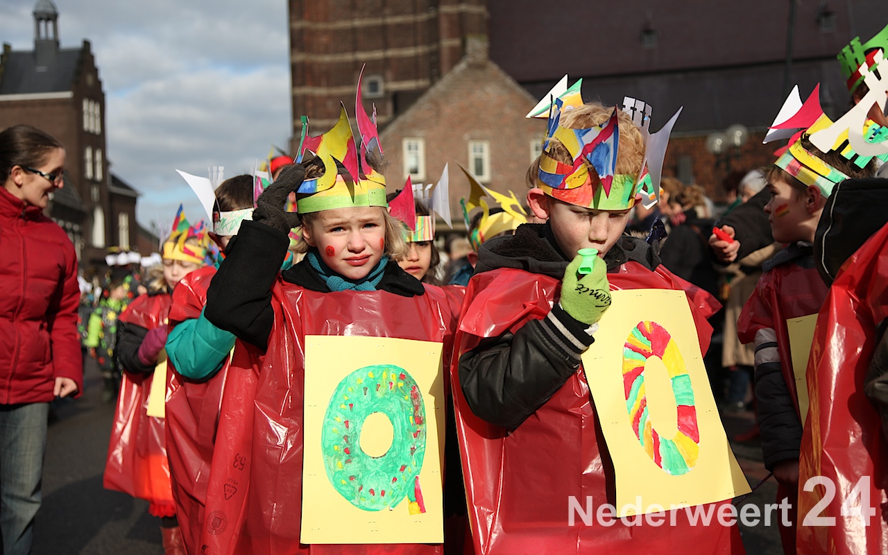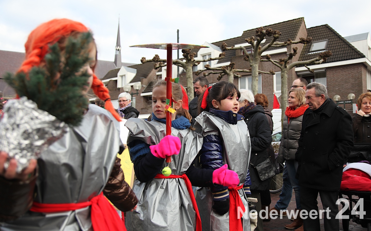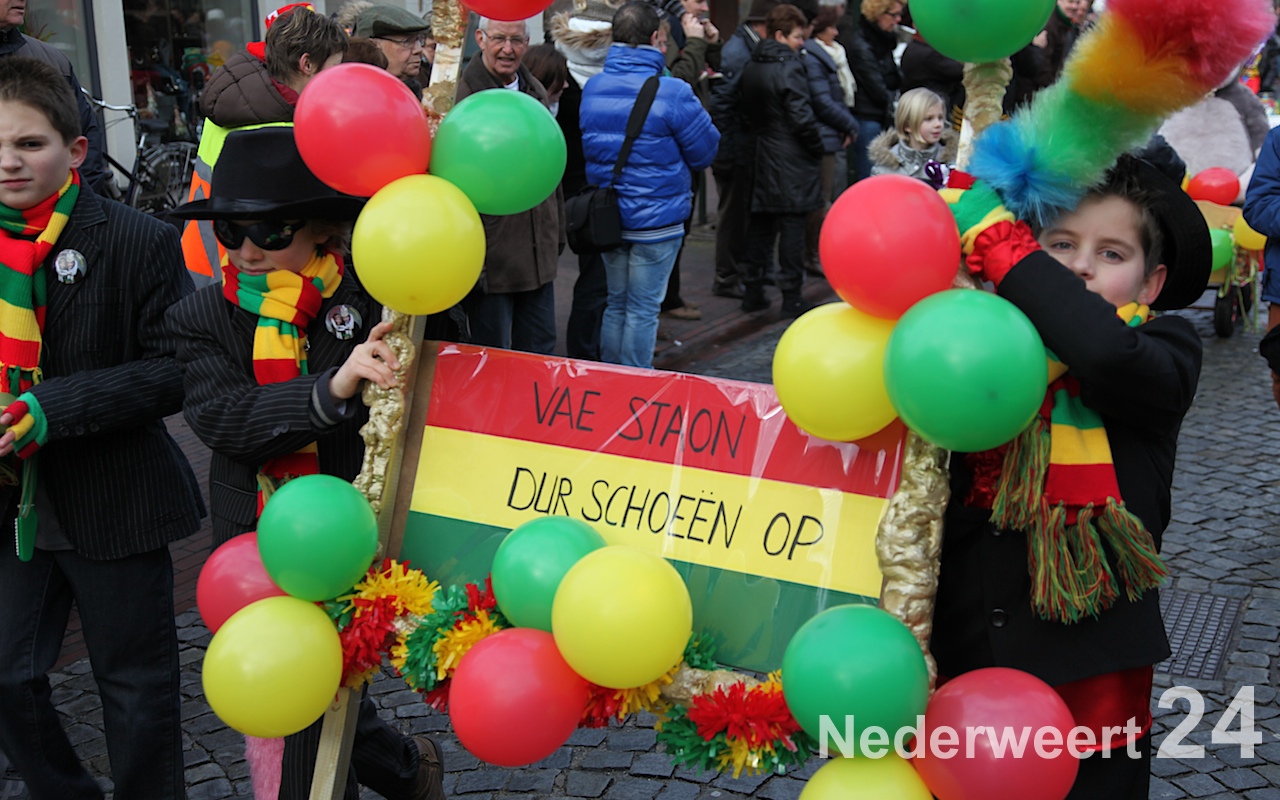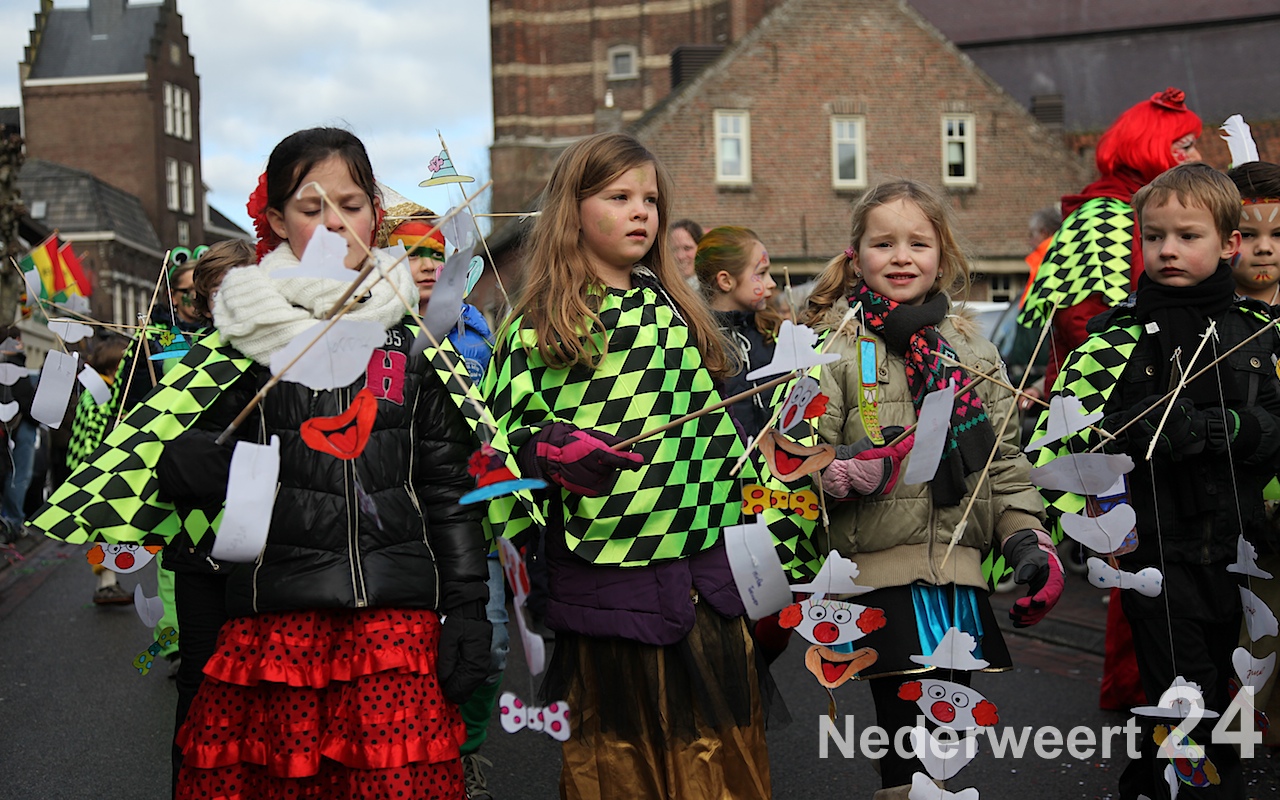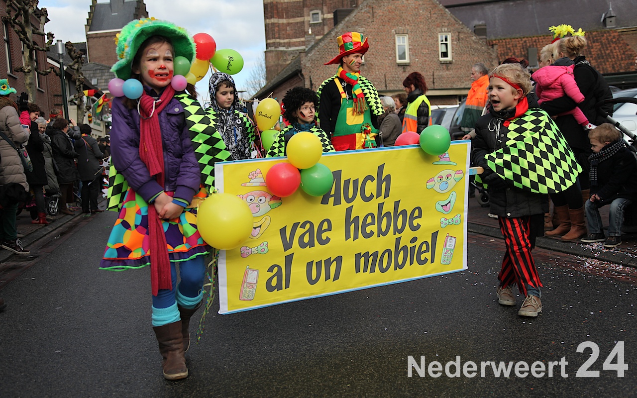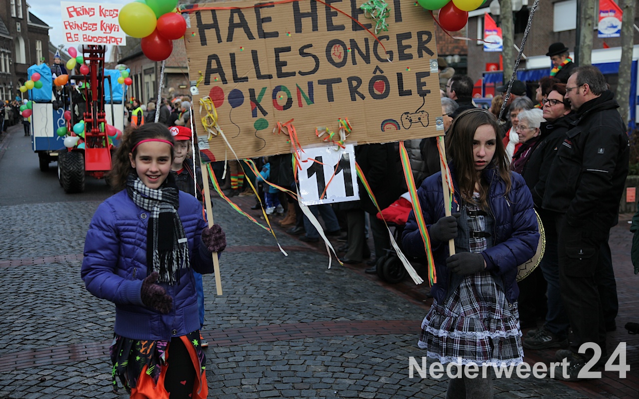 Alle kinderen van de basisscholen van Nederweert; BS Budschop, BS de Bongerd, BS de Klimop en BS de Kerneel, zijn vanmorgen door de straten van Nederweert getrokken. De kinderen hadden de prachtigste creaties gemaakt. Grote wagens voor de prinsenparen, kleine wagens voor de peuters en grote groepen uitgedost in prachtige kleuren.