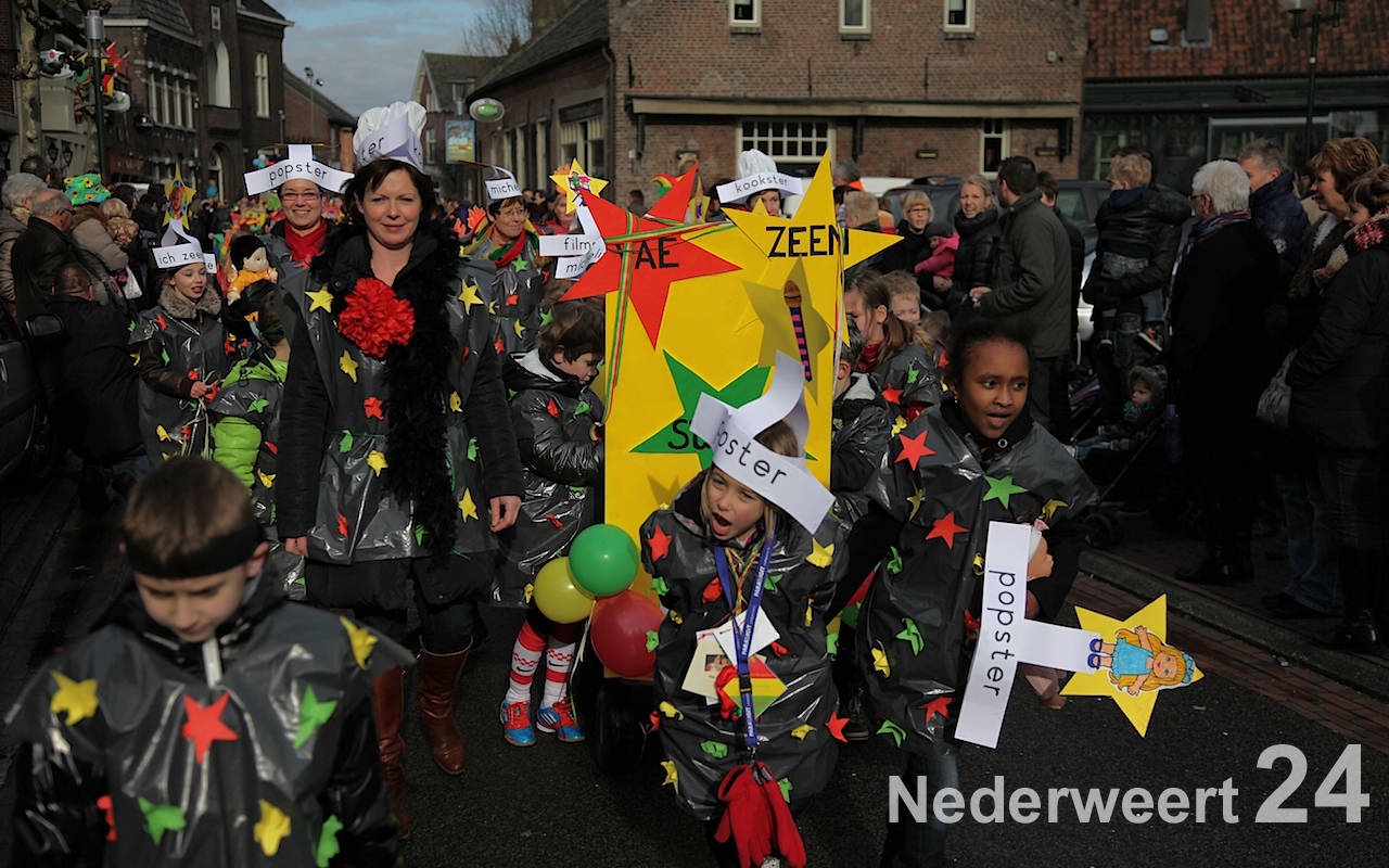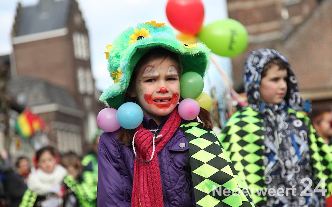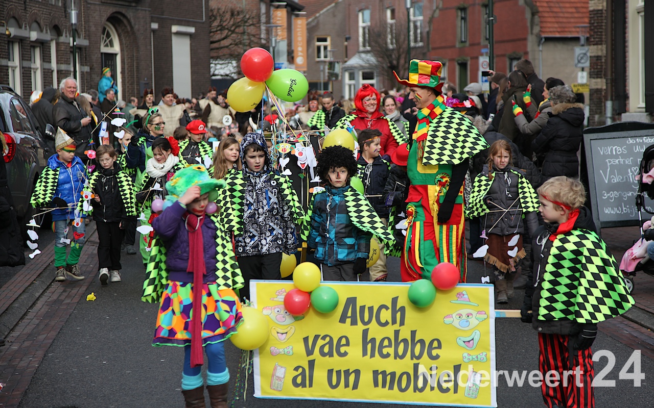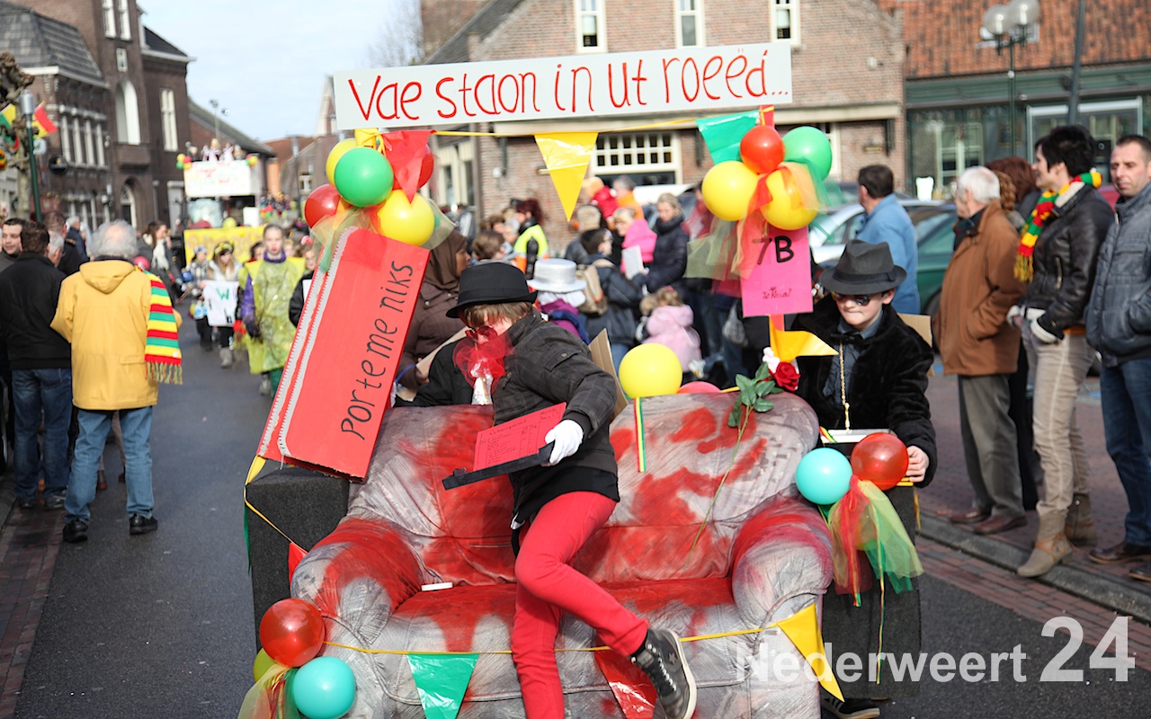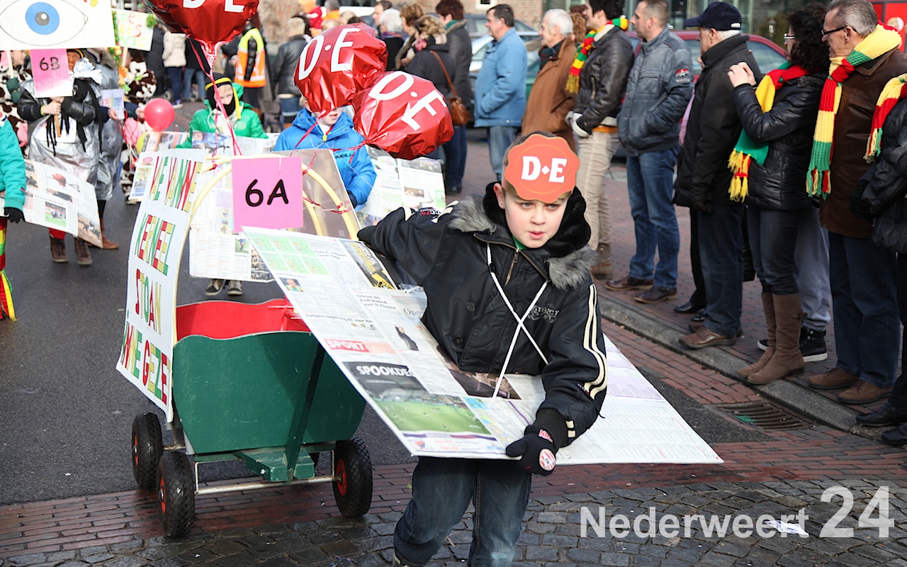 Alle kinderen van de basisscholen van Nederweert; BS Budschop, BS de Bongerd, BS de Klimop en BS de Kerneel, zijn vanmorgen door de straten van Nederweert getrokken. De kinderen hadden de prachtigste creaties gemaakt. Grote wagens voor de prinsenparen, kleine wagens voor de peuters en grote groepen uitgedost in prachtige kleuren.