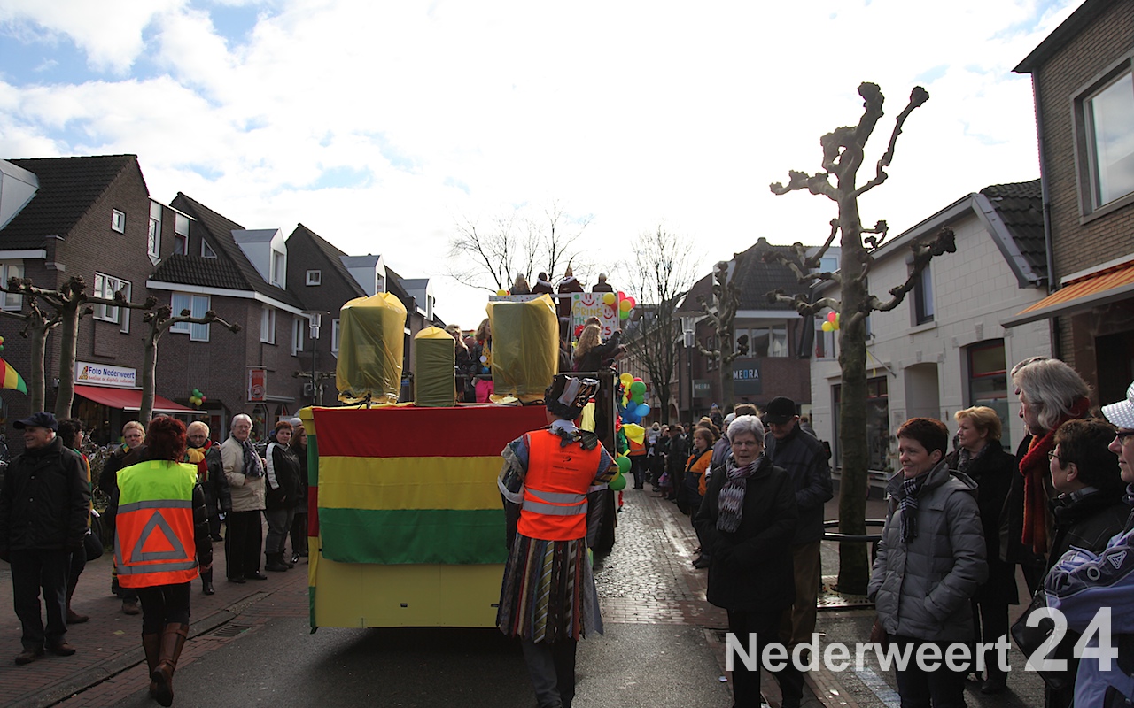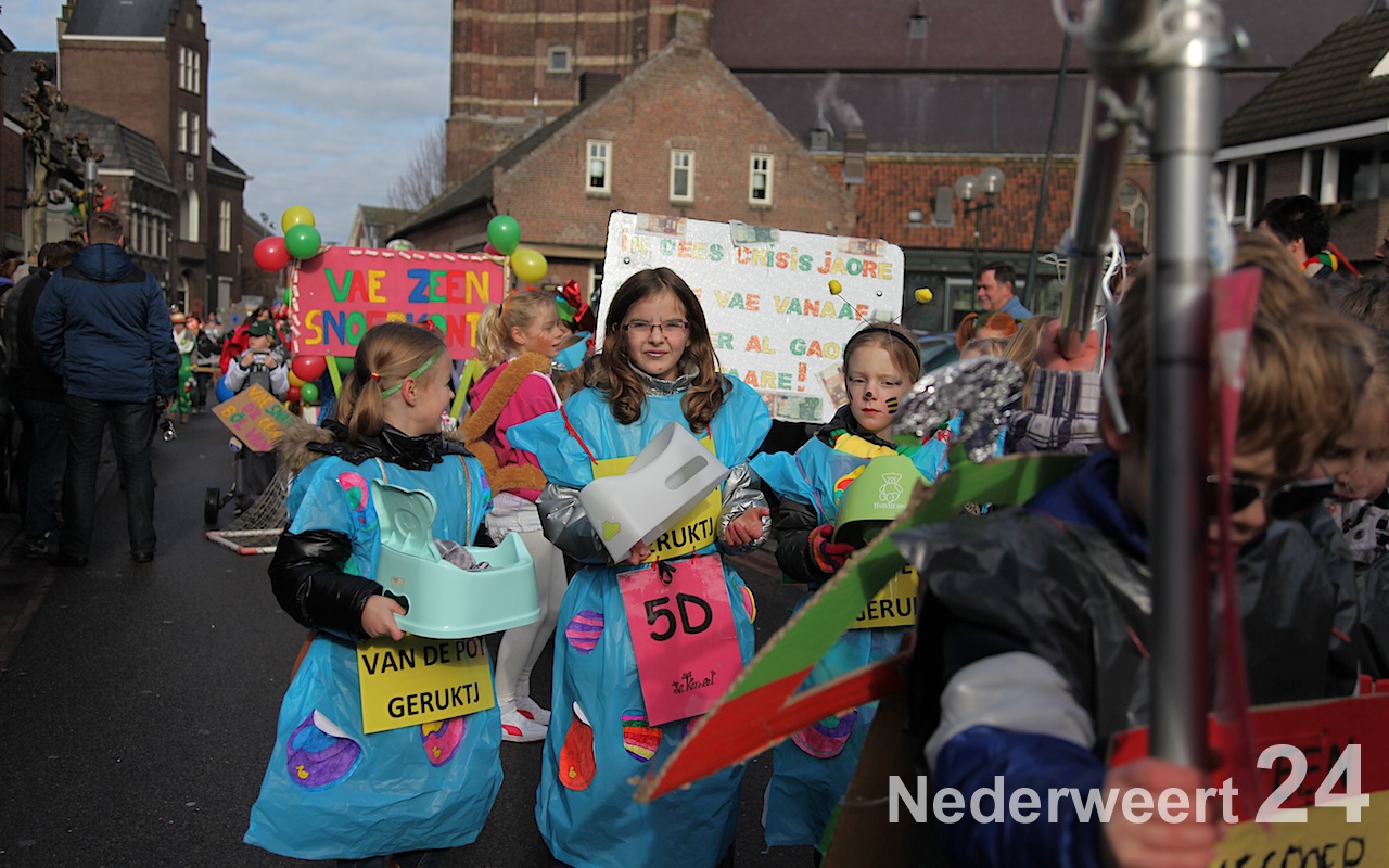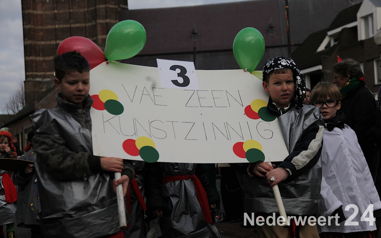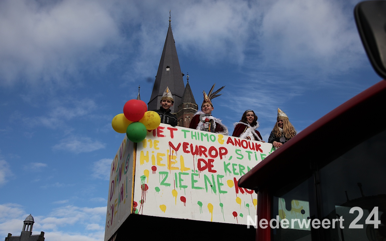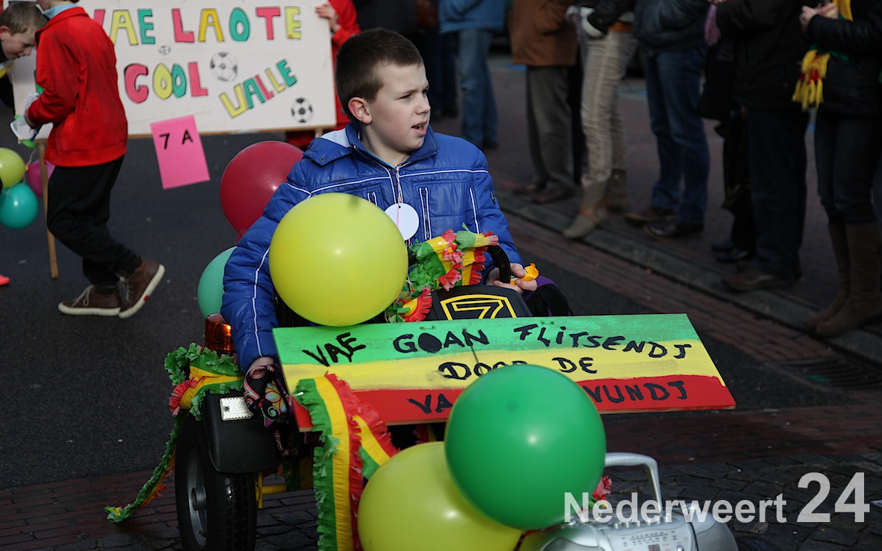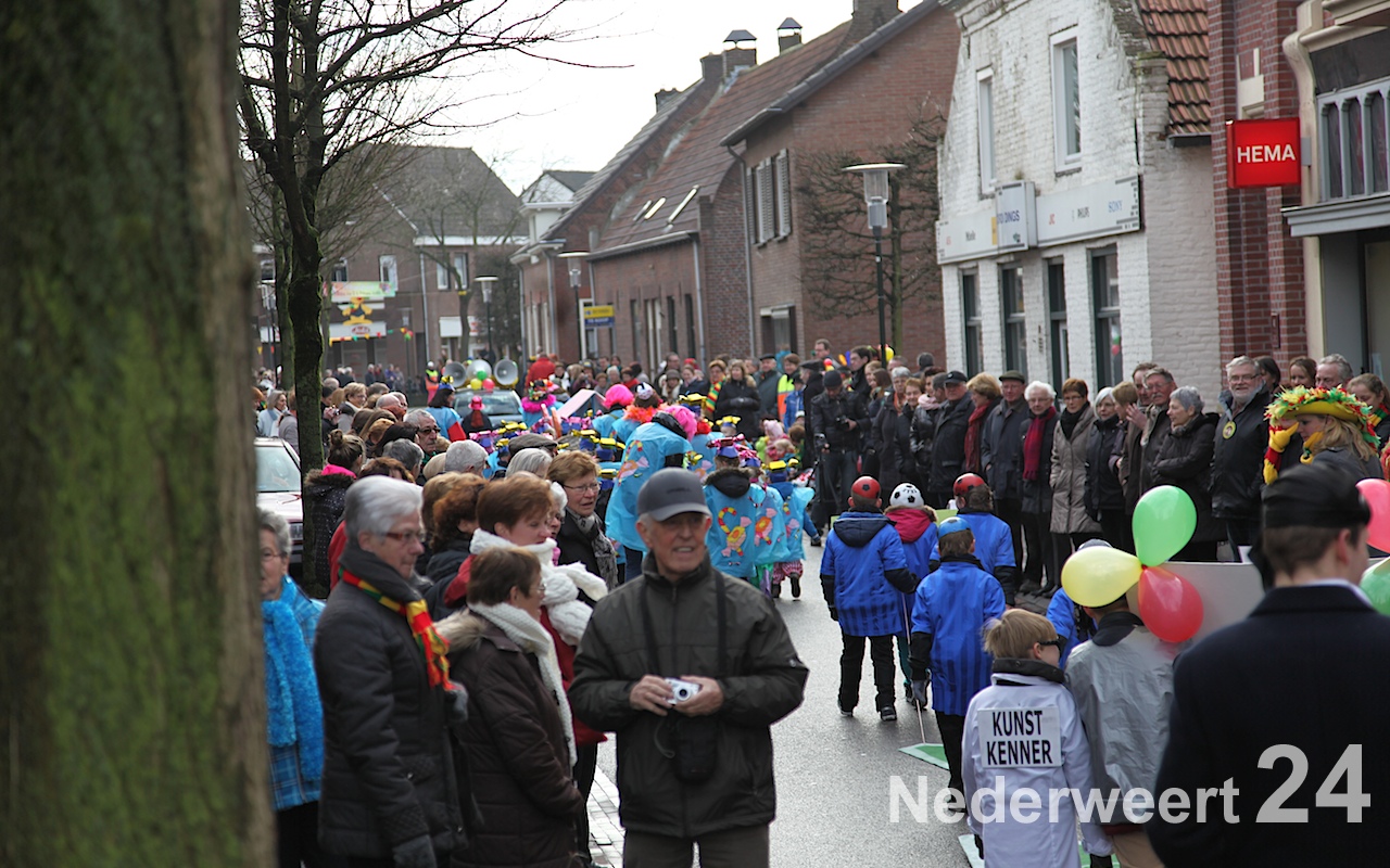 Alle kinderen van de basisscholen van Nederweert; BS Budschop, BS de Bongerd, BS de Klimop en BS de Kerneel, zijn vanmorgen door de straten van Nederweert getrokken. De kinderen hadden de prachtigste creaties gemaakt. Grote wagens voor de prinsenparen, kleine wagens voor de peuters en grote groepen uitgedost in prachtige kleuren.