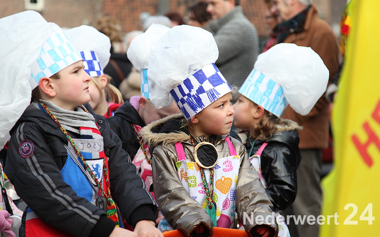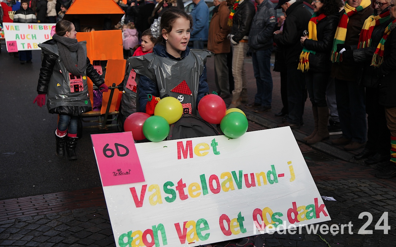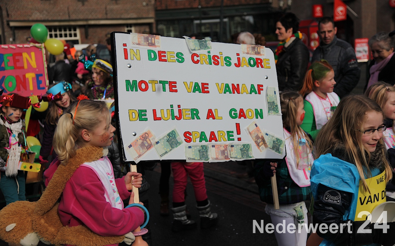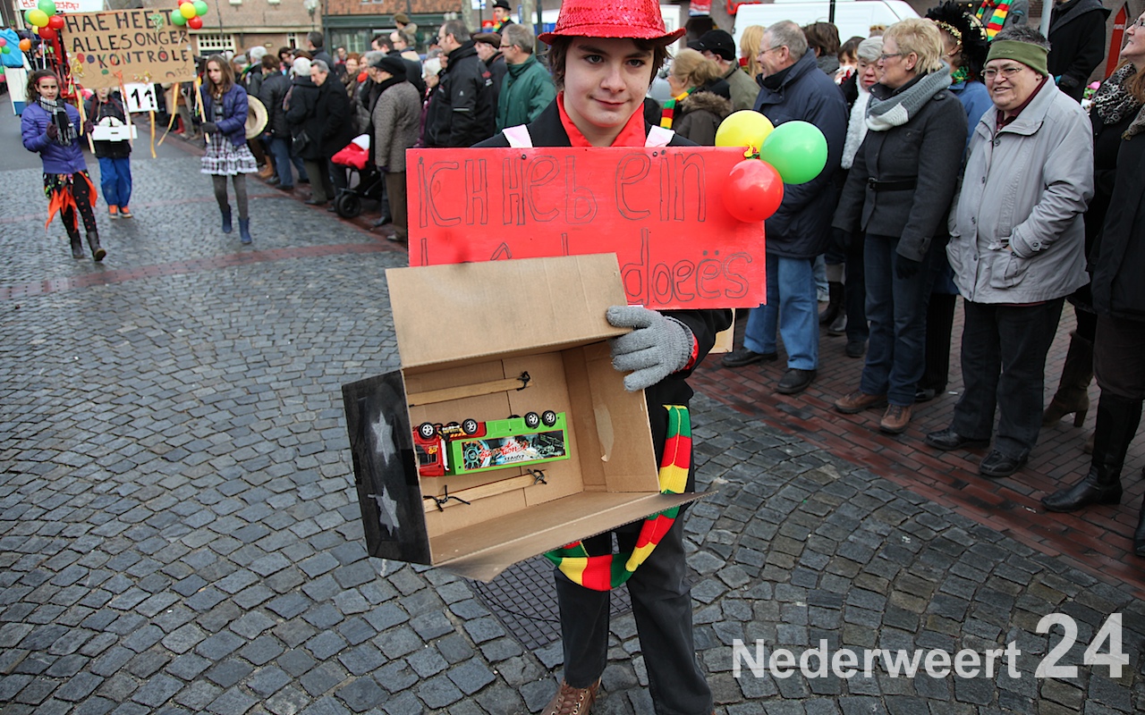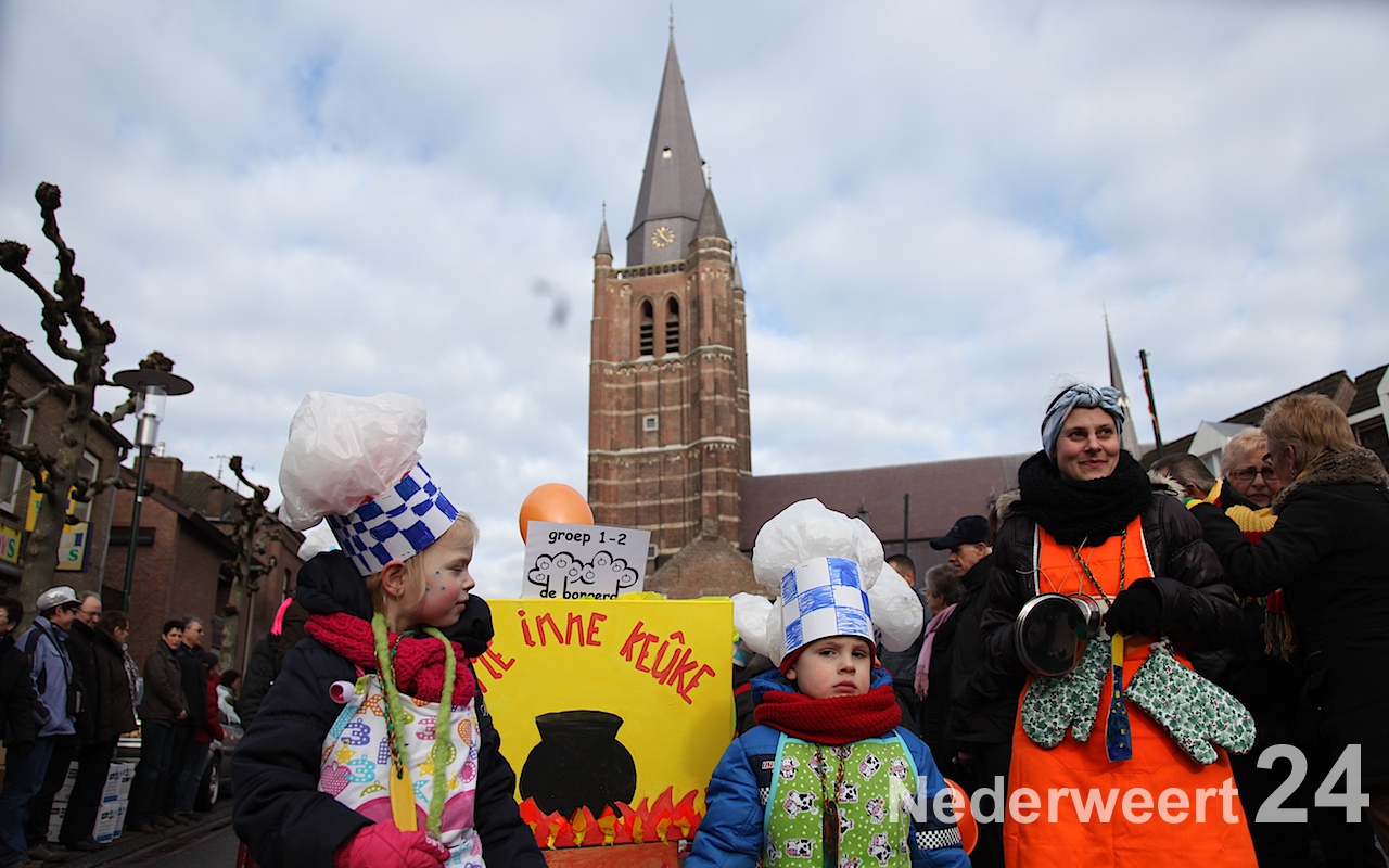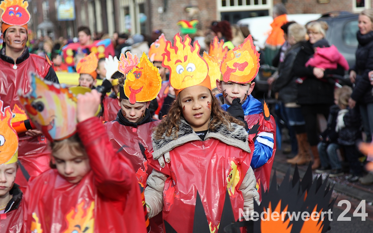 Alle kinderen van de basisscholen van Nederweert; BS Budschop, BS de Bongerd, BS de Klimop en BS de Kerneel, zijn vanmorgen door de straten van Nederweert getrokken. De kinderen hadden de prachtigste creaties gemaakt. Grote wagens voor de prinsenparen, kleine wagens voor de peuters en grote groepen uitgedost in prachtige kleuren.