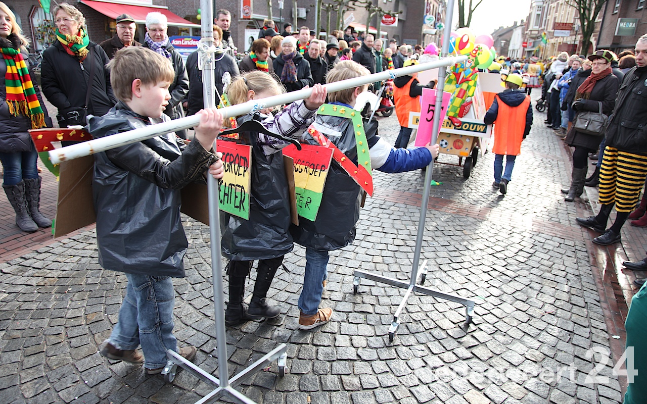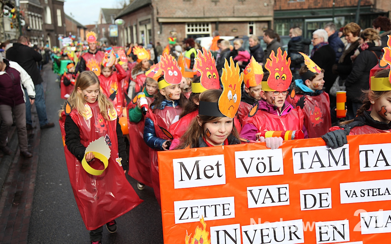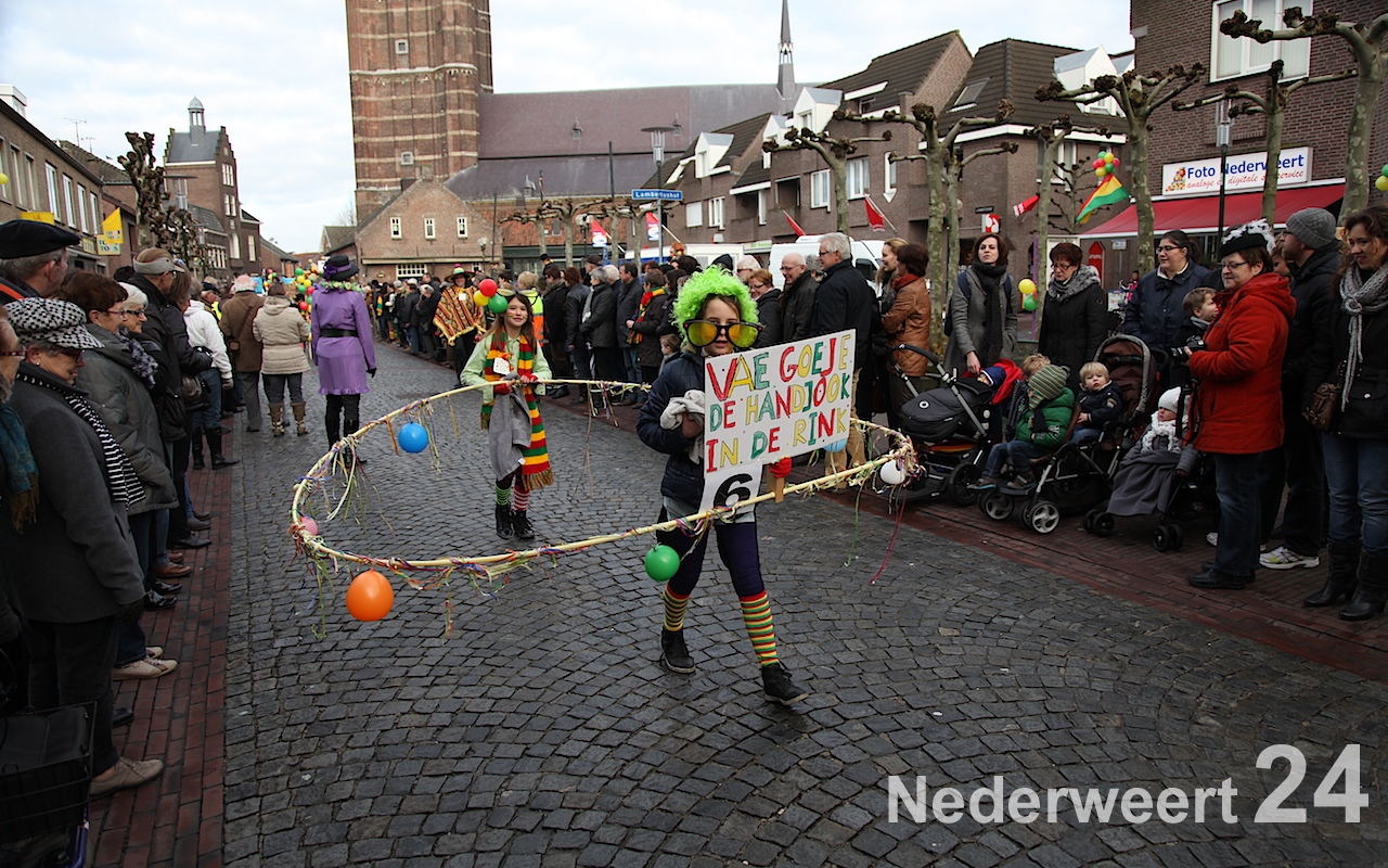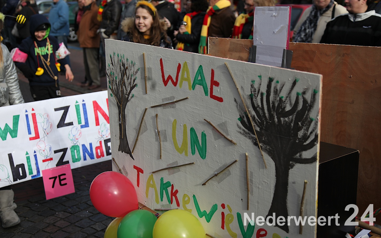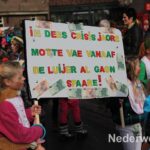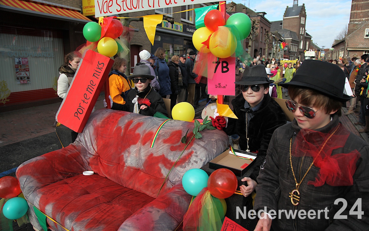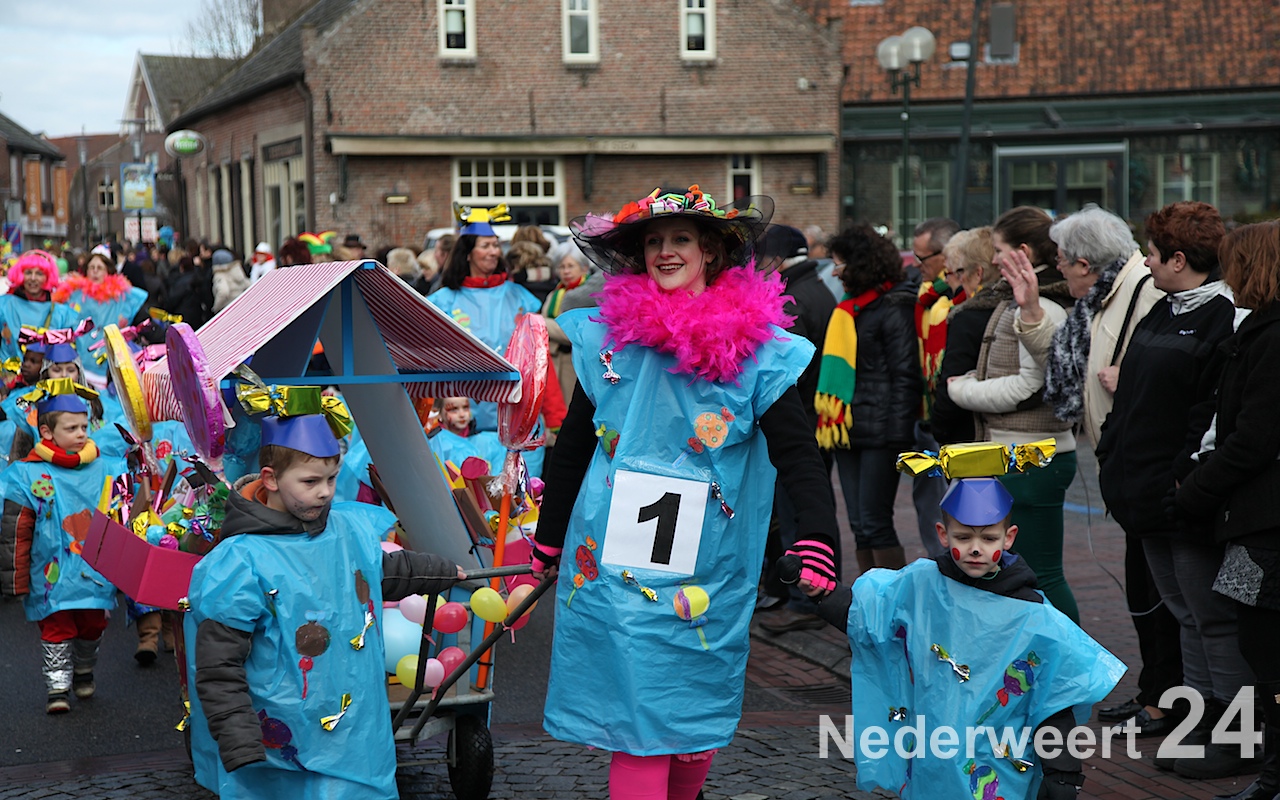 Alle kinderen van de basisscholen van Nederweert; BS Budschop, BS de Bongerd, BS de Klimop en BS de Kerneel, zijn vanmorgen door de straten van Nederweert getrokken. De kinderen hadden de prachtigste creaties gemaakt. Grote wagens voor de prinsenparen, kleine wagens voor de peuters en grote groepen uitgedost in prachtige kleuren.