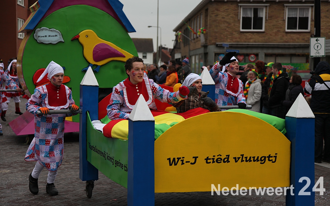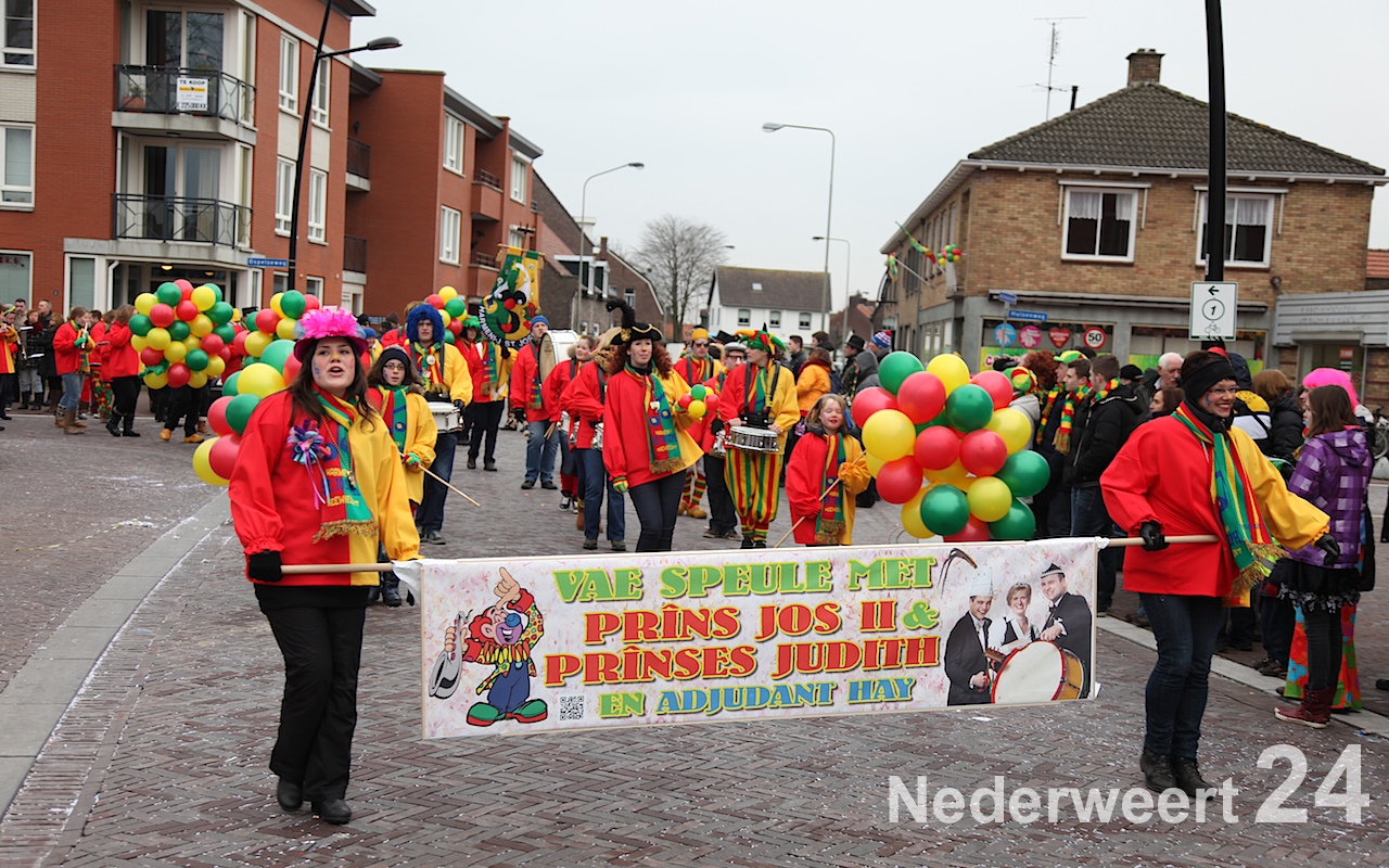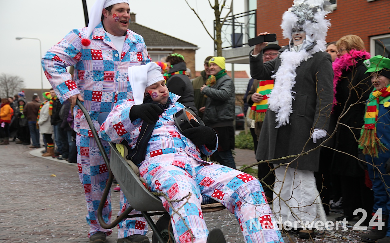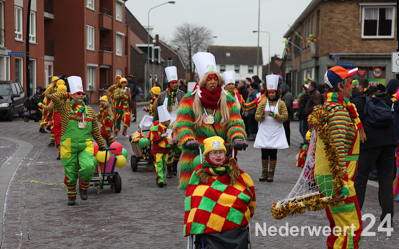 Vanaf half 3 kwam de bonte stoet in beweging om door de straten van Budschop en Nederweert te trekken. Net zoals gisteren in Weert en vandaag in Ospel was er veel publiek op de been om de creaties van dit jaar te bewonderen. Tijdens de optocht konden de Nederweerter prinsen zich ook nog een keer aan het publiek presenteren.