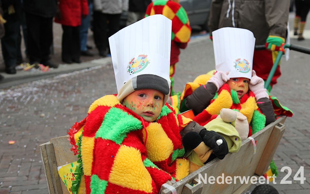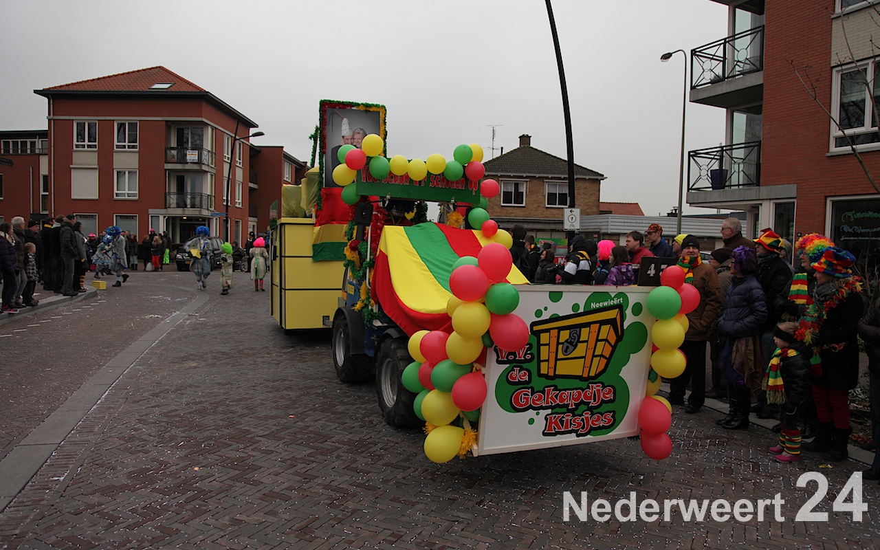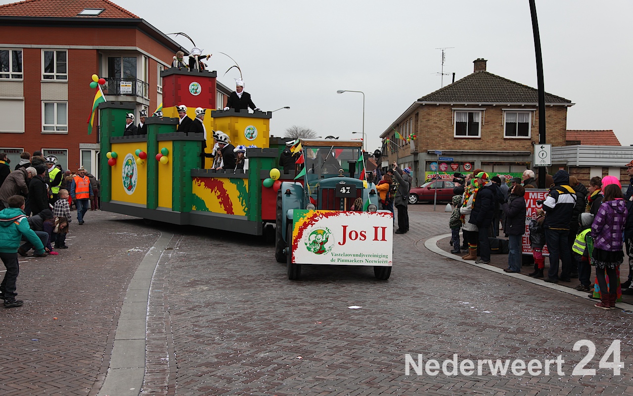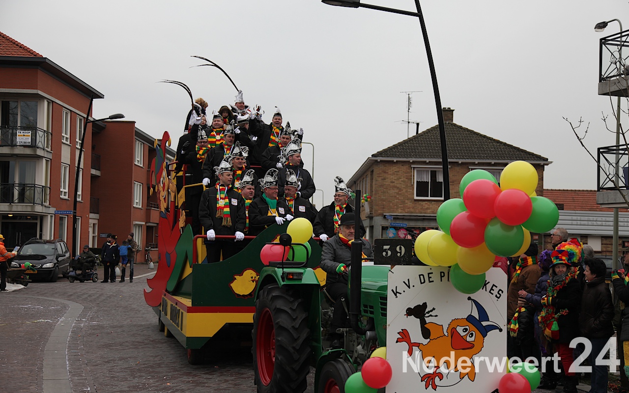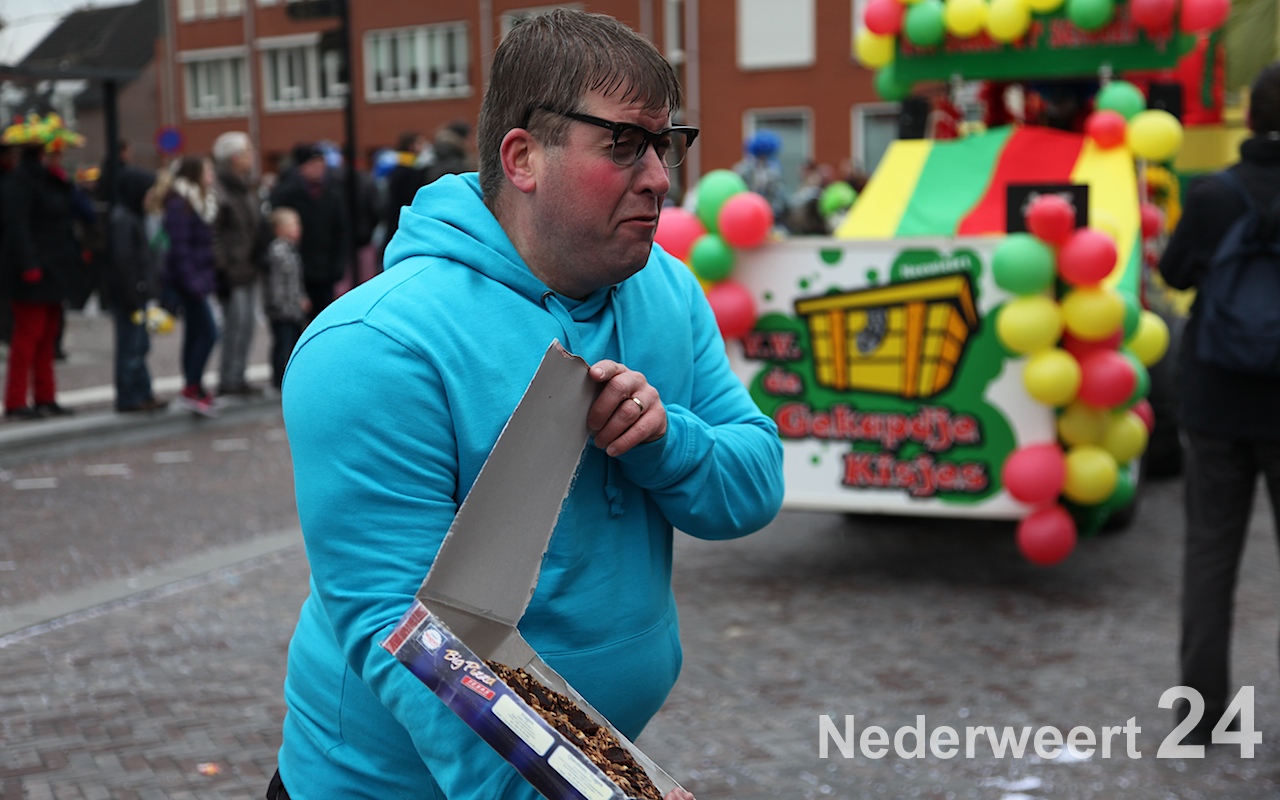 Vanaf half 3 kwam de bonte stoet in beweging om door de straten van Budschop en Nederweert te trekken. Net zoals gisteren in Weert en vandaag in Ospel was er veel publiek op de been om de creaties van dit jaar te bewonderen. Tijdens de optocht konden de Nederweerter prinsen zich ook nog een keer aan het publiek presenteren.