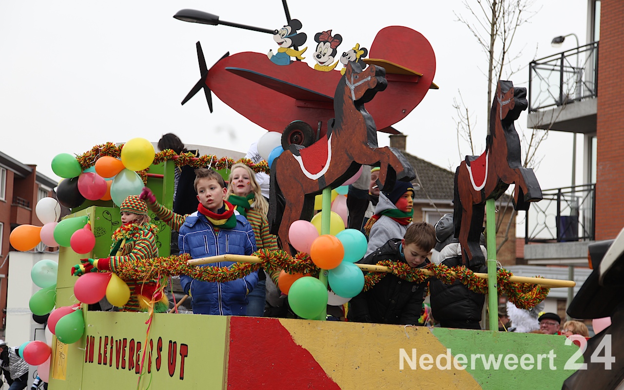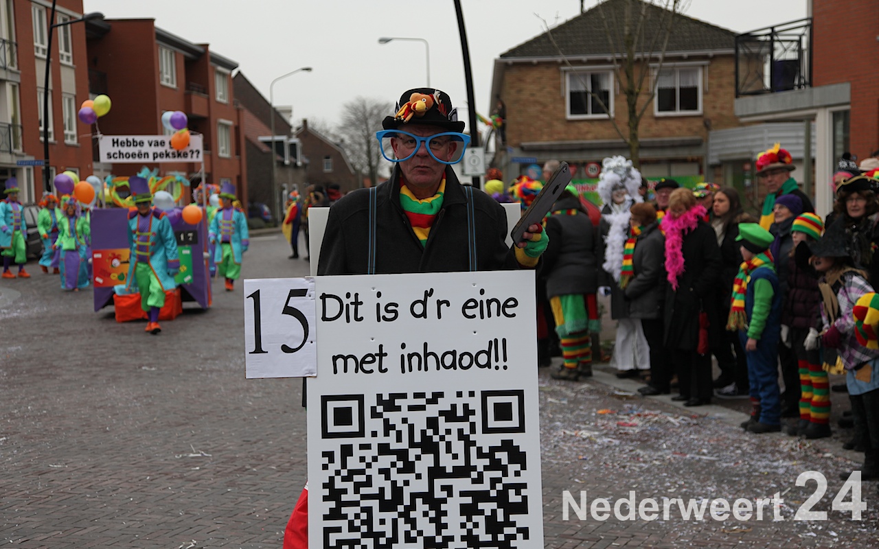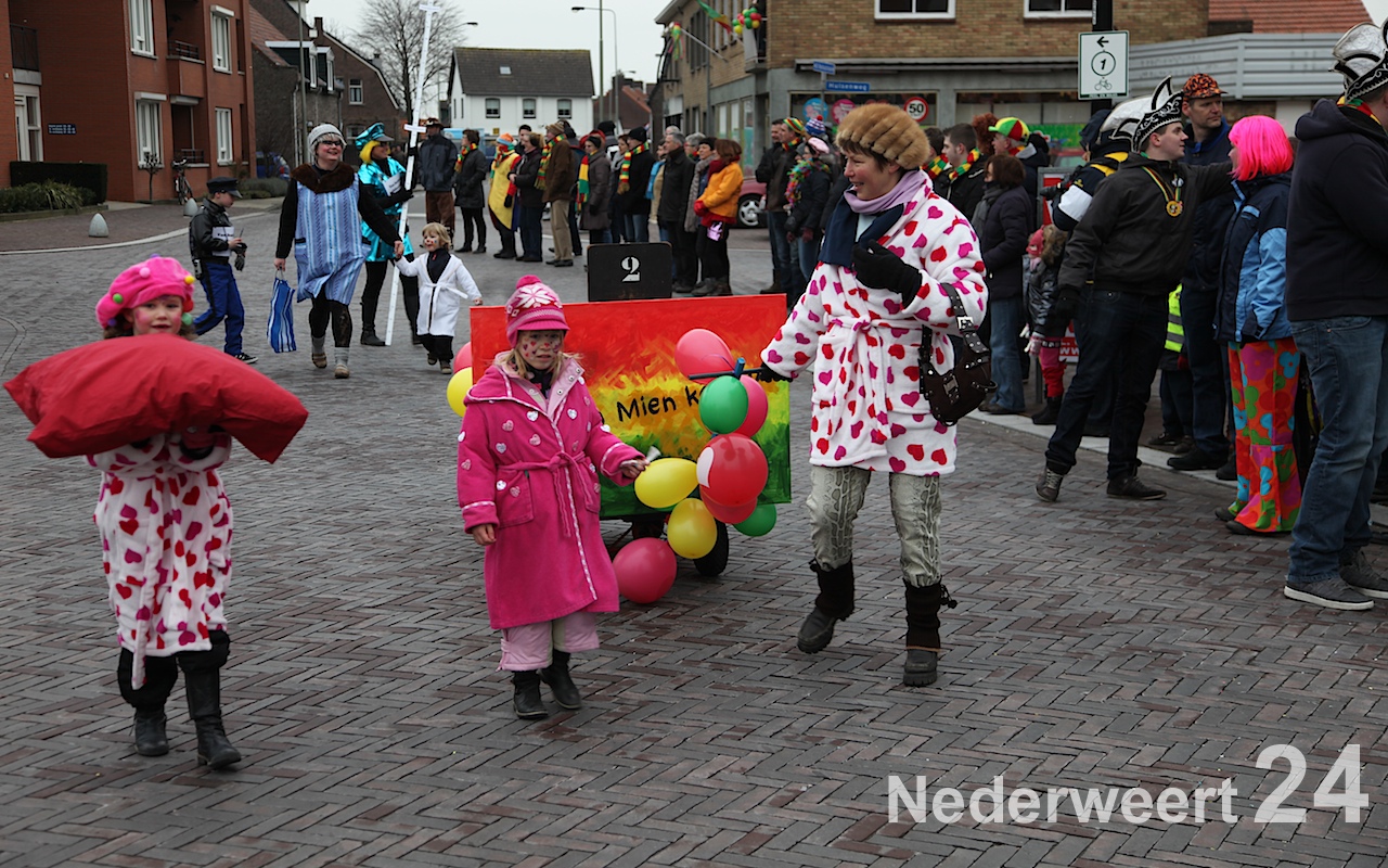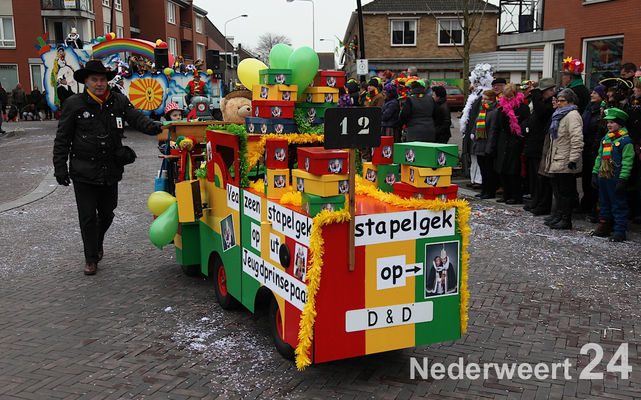Vanaf half 3 kwam de bonte stoet in beweging om door de straten van Budschop en Nederweert te trekken. Net zoals gisteren in Weert en vandaag in Ospel was er veel publiek op de been om de creaties van dit jaar te bewonderen. Tijdens de optocht konden de Nederweerter prinsen zich ook nog een keer aan het publiek presenteren.