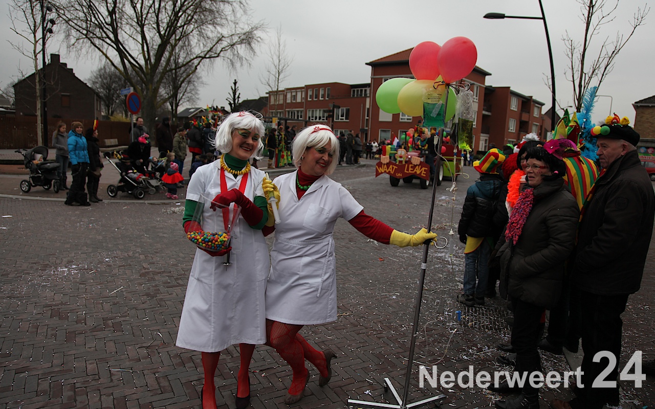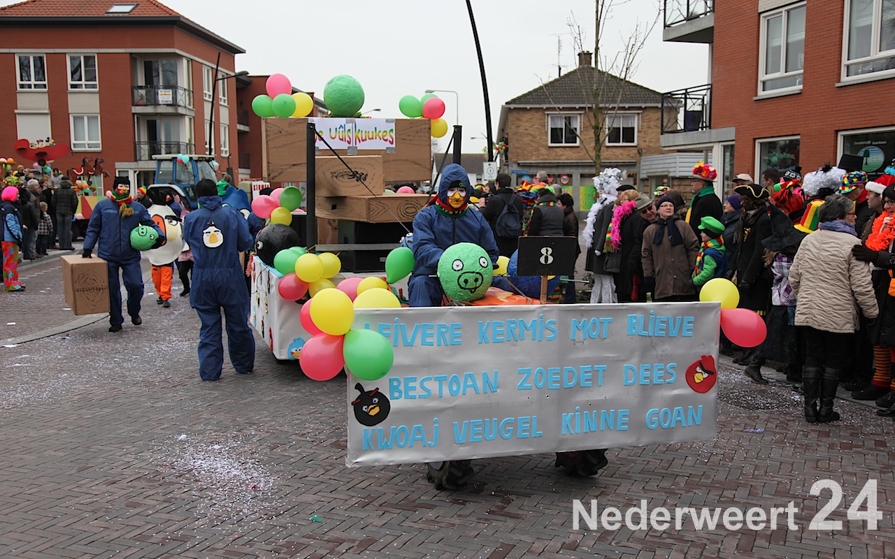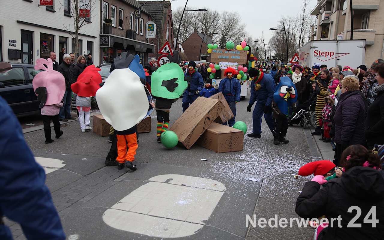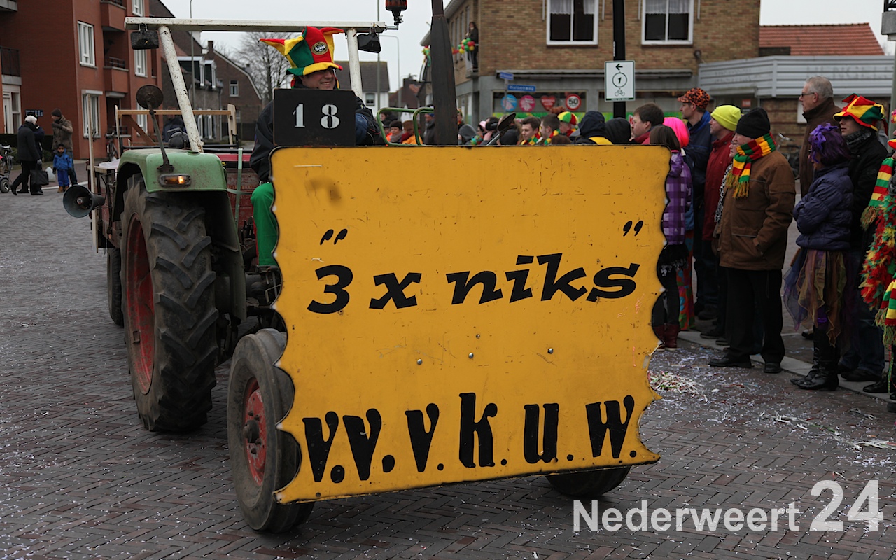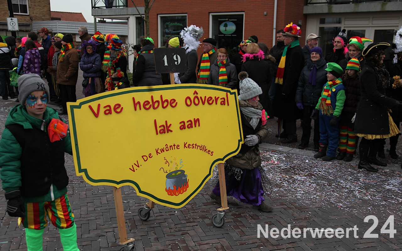 Vanaf half 3 kwam de bonte stoet in beweging om door de straten van Budschop en Nederweert te trekken. Net zoals gisteren in Weert en vandaag in Ospel was er veel publiek op de been om de creaties van dit jaar te bewonderen. Tijdens de optocht konden de Nederweerter prinsen zich ook nog een keer aan het publiek presenteren.