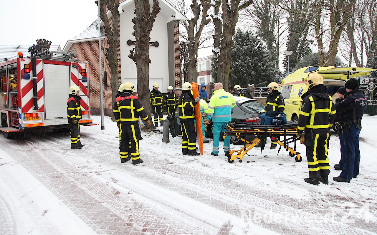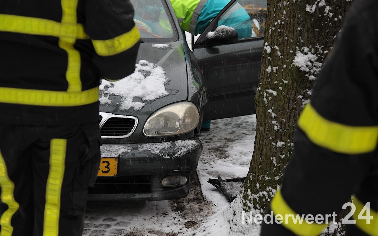 Ter plaatse zagen wij een personenauto tussen de bomen voor de kapel staan. Waarschijnlijk is ook hier de gladheid de oorzaak van het ongeval. De bestuurder werd ter plekke gestabiliseerd en met de ambulance naar het ziekenhuis in Weert vervoerd.