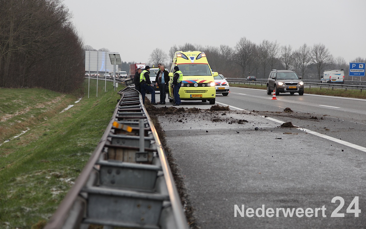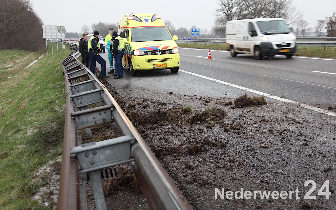 Donderdagmiddag rond kwart voor vier werd een ambulance opgeroepen voor hulpverlening bij een ongeval op de A2 bij Nederweert.