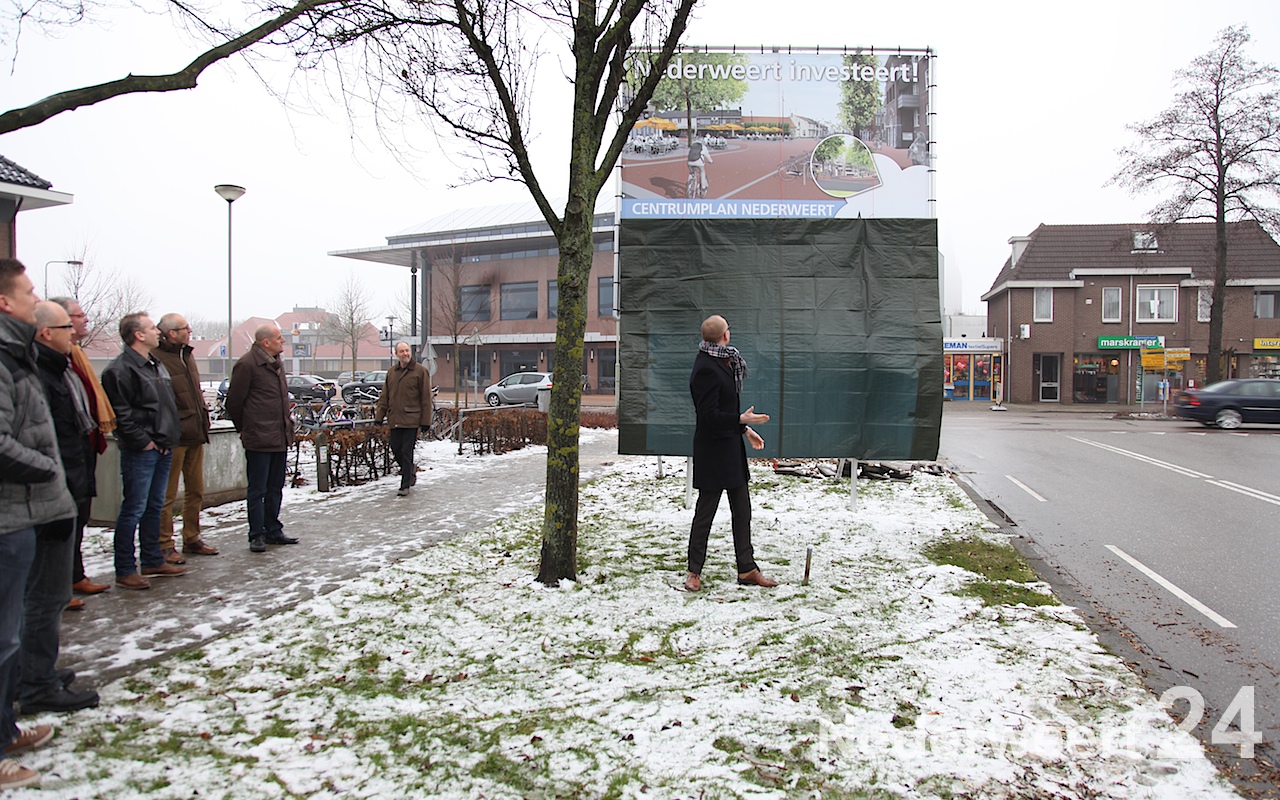 Vrijdag morgen 15 februari heeft wethouder Mackus officieel het startsein gegeven voor de reconstructie van de Geenestraat en Brugstraat in Nederweert. In het bijzijn van aannemers, uitvoerders, pers en ambtenaren van de gemeente Nederweert onthulde de wethouder een groot bouwbord op de hoek Lindenstraat en Geenestraat.
