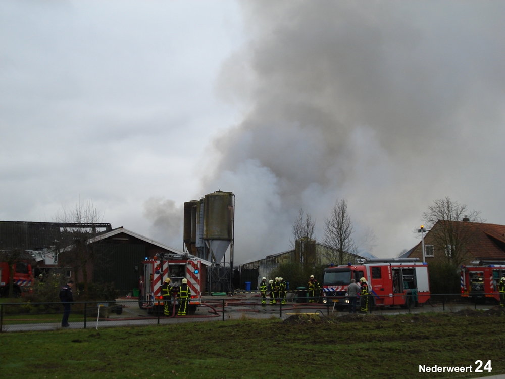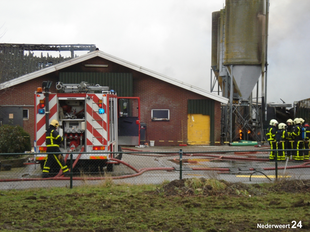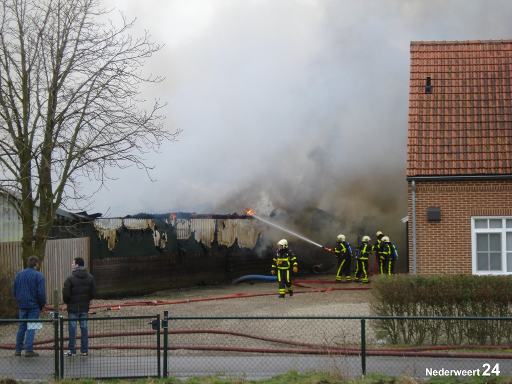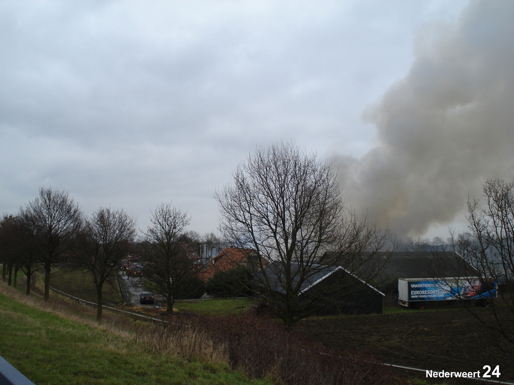Vrijdagmorgen rond 11.00 uur werd de brandweer gealarmeerd voor een grote brand aan de Heijsterstraat in Nederweert. De melding werd al snel opgeschaald naar zeer grote brand. De brandweer van Weert en Nederweert rukte met groot materieel uit. Ook werden diverse brandweerkorpsen uit de regio opgeroepen om assistentie te verlenen, waaronder enkele waterwagens.