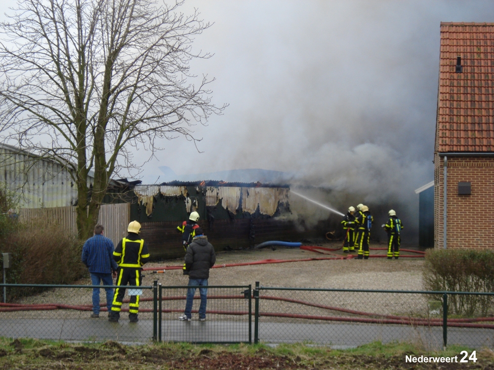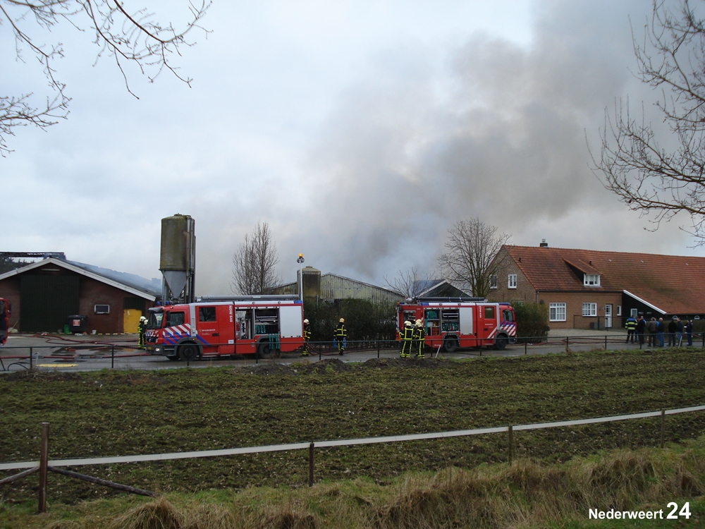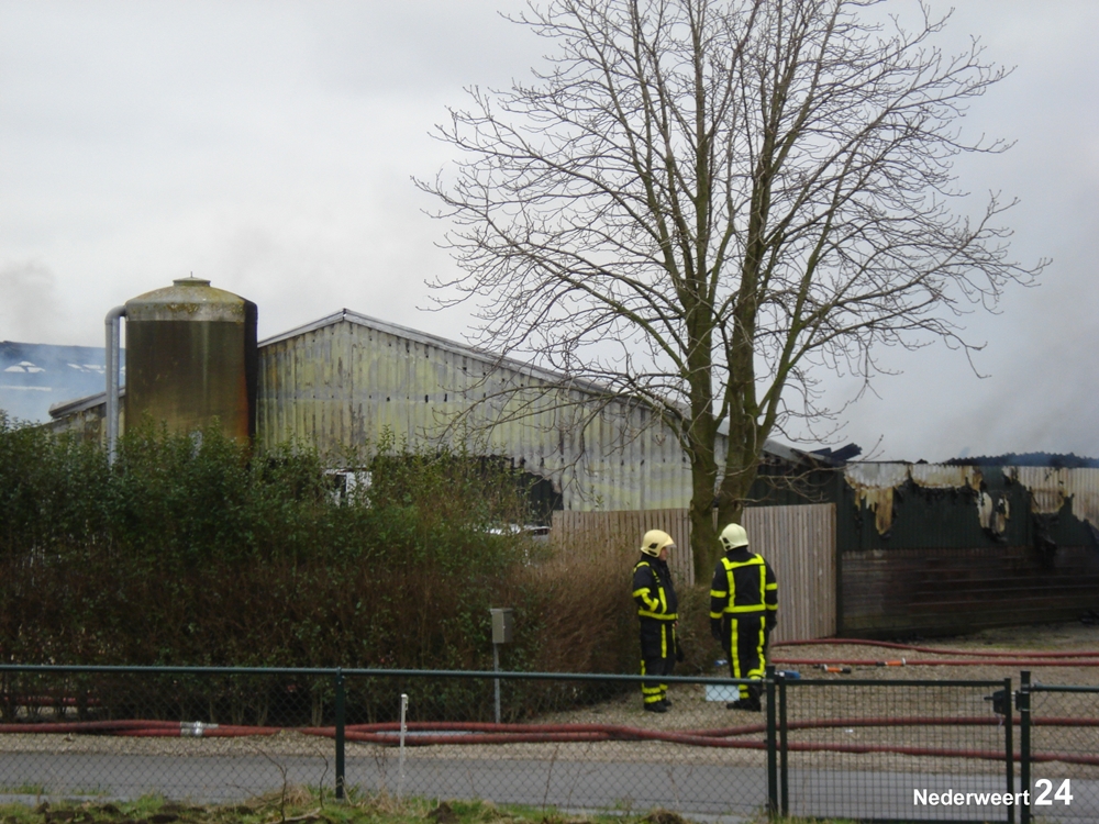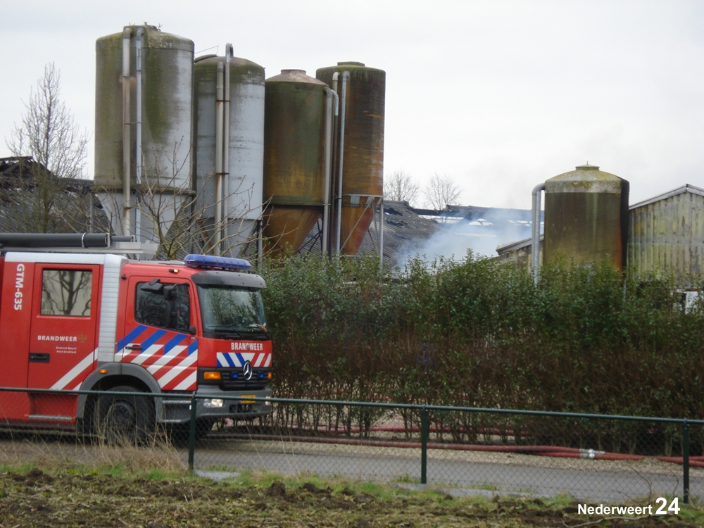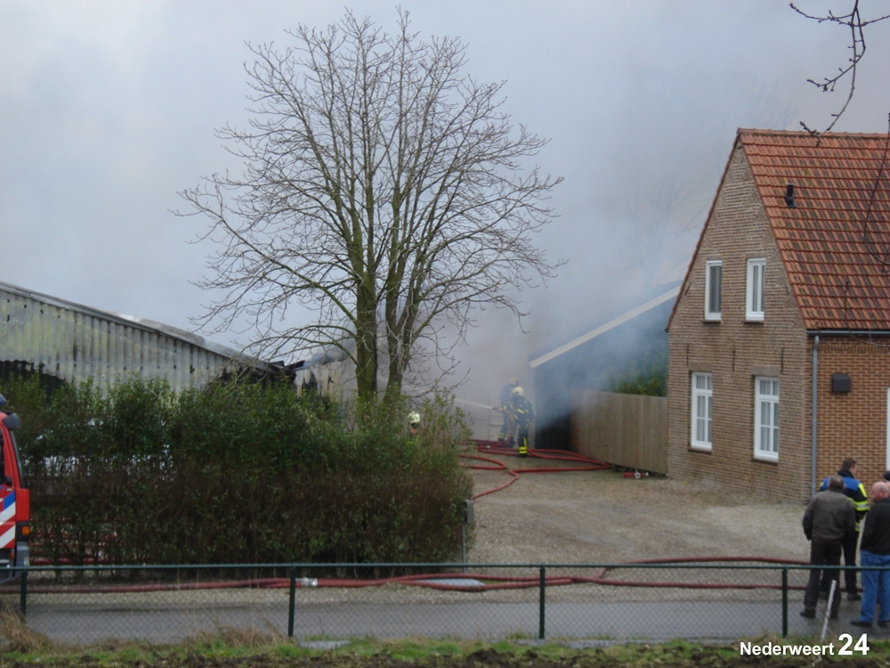 Vrijdagmorgen rond 11.00 uur werd de brandweer gealarmeerd voor een grote brand aan de Heijsterstraat in Nederweert. De melding werd al snel opgeschaald naar zeer grote brand. De brandweer van Weert en Nederweert rukte met groot materieel uit. Ook werden diverse brandweerkorpsen uit de regio opgeroepen om assistentie te verlenen, waaronder enkele waterwagens.