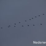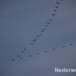 Met verrekijkers en telescopen zien de vogelkenners deze statige vogel al van enkele kilometers ver aankomen. In groepen van enkele tientallen tot zelfs enkele honderden vogels vliegen ze in een v-vorm voorbij.