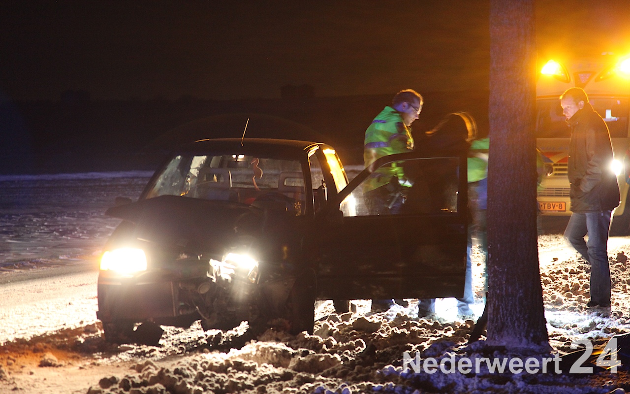 Op de Houtsberg is vanavond een auto tegen een boom gereden door de gladheid. De auto reed vanuit Leveroy richting Nederweert en is door de gladheid van de weg geraakt en tegen een boom gereden. De vrouw is onder begeleiding van de ambulance zelf uit de auto gekomen en is meegenomen naar het ziekenhuis.