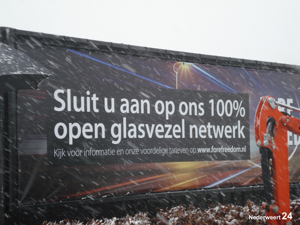 Weer of geen weer, maar vanmorgen heeft de officiële aftrap plaats gevonden van de aanleg van een glasvezelnetwerk op bedrijventerrein Pannenweg in Nederweert. Wethouder Wernink en de heer Edwin de Raadt van het bedrijf Fore Freedom hebben om 11.00 uur samen een gouden schop in de grond gezet. Met de aanleg van het glasvezelnetwerk verstevigt bedrijventerrein Pannenweg haar positie.