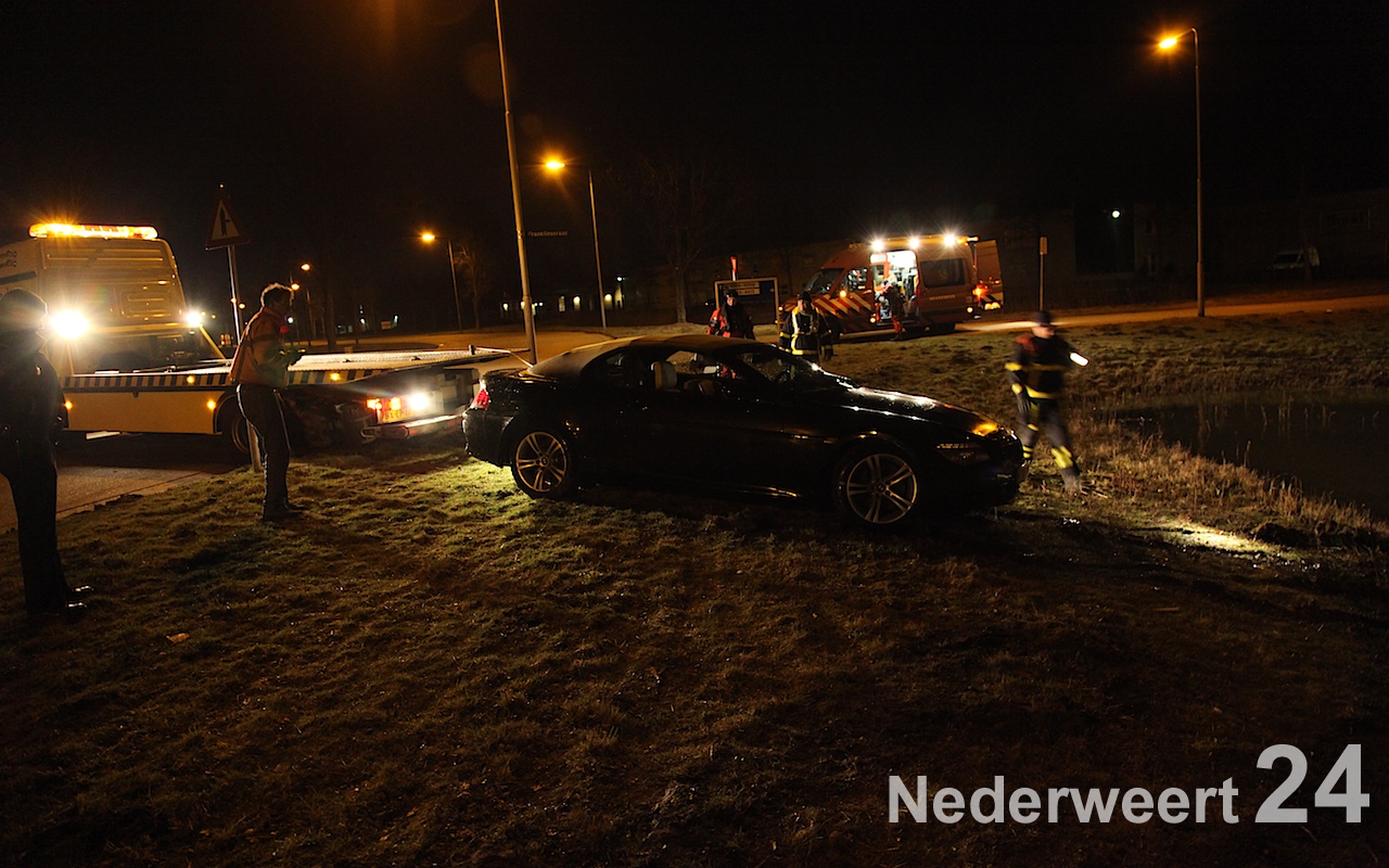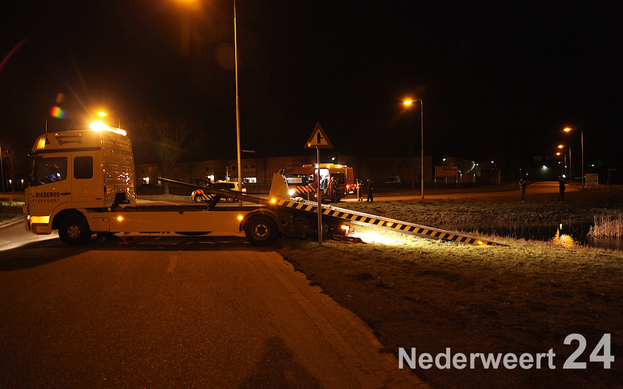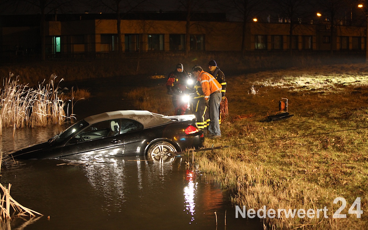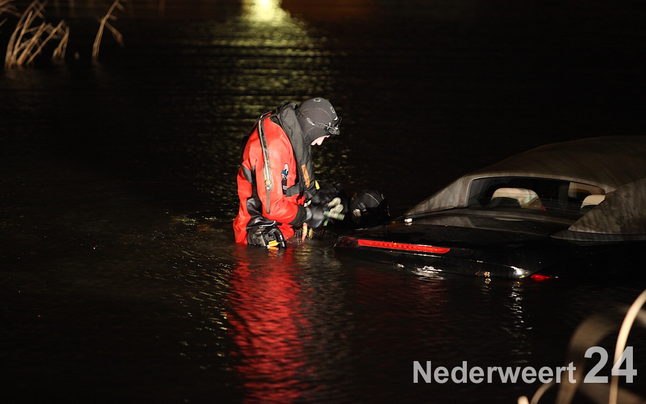 De ambulance heeft de bestuurder mee genomen ter controle. Het duikteam van de brandweer Weert heeft samen met de berger de auto uit het water gehaald.