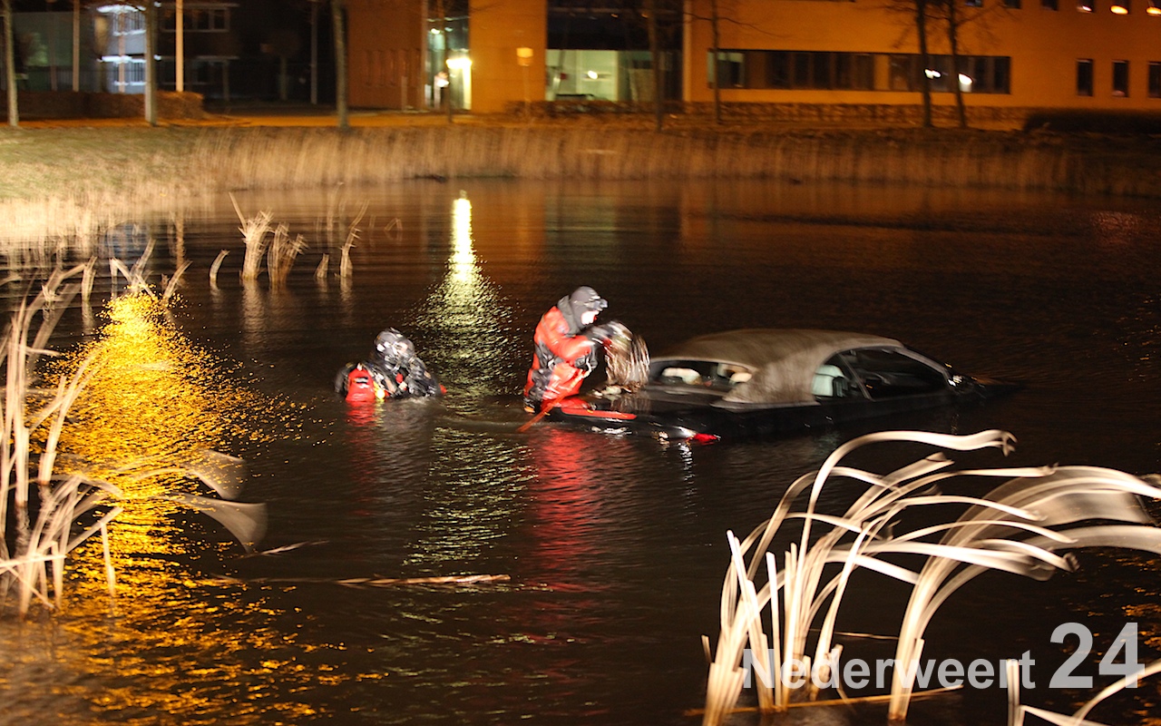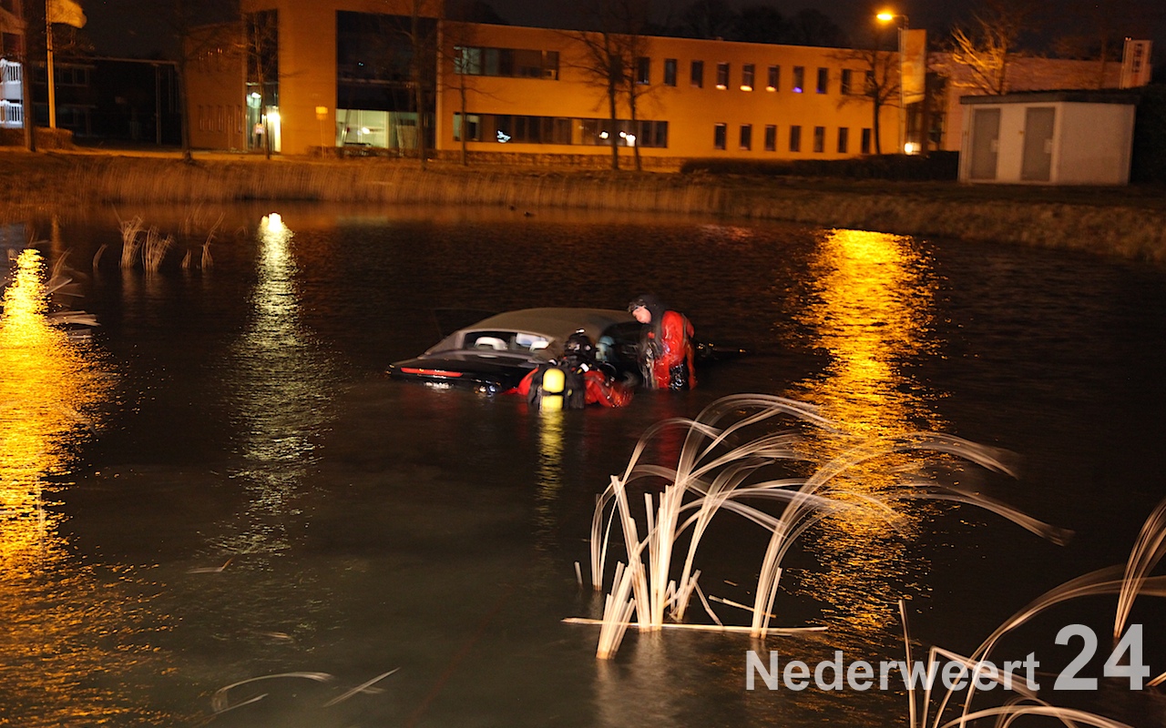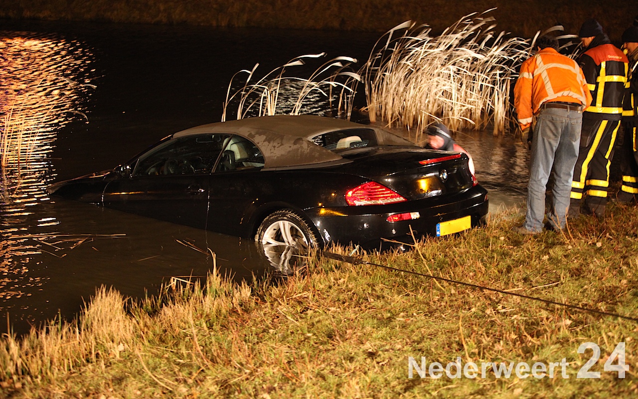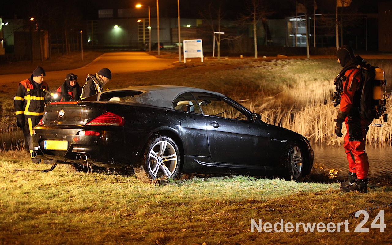 De ambulance heeft de bestuurder mee genomen ter controle. Het duikteam van de brandweer Weert heeft samen met de berger de auto uit het water gehaald.