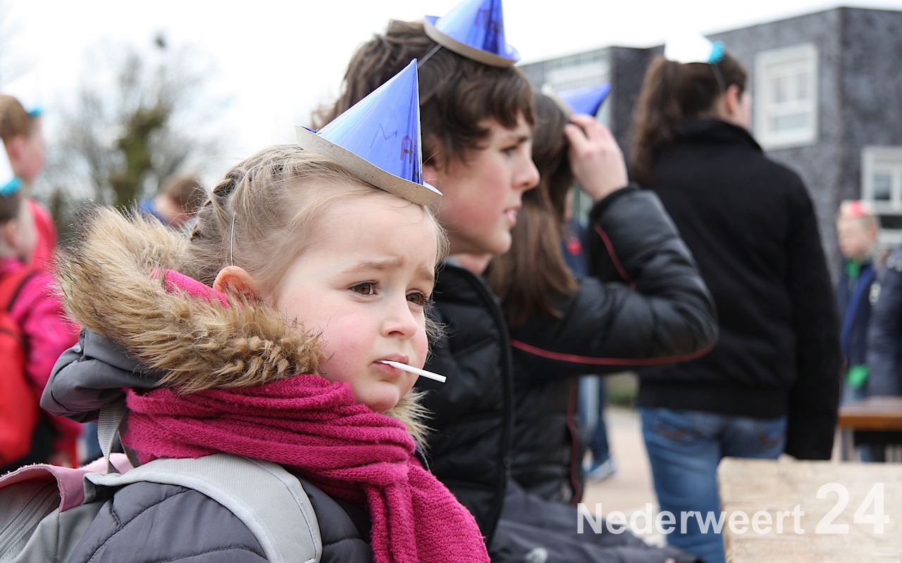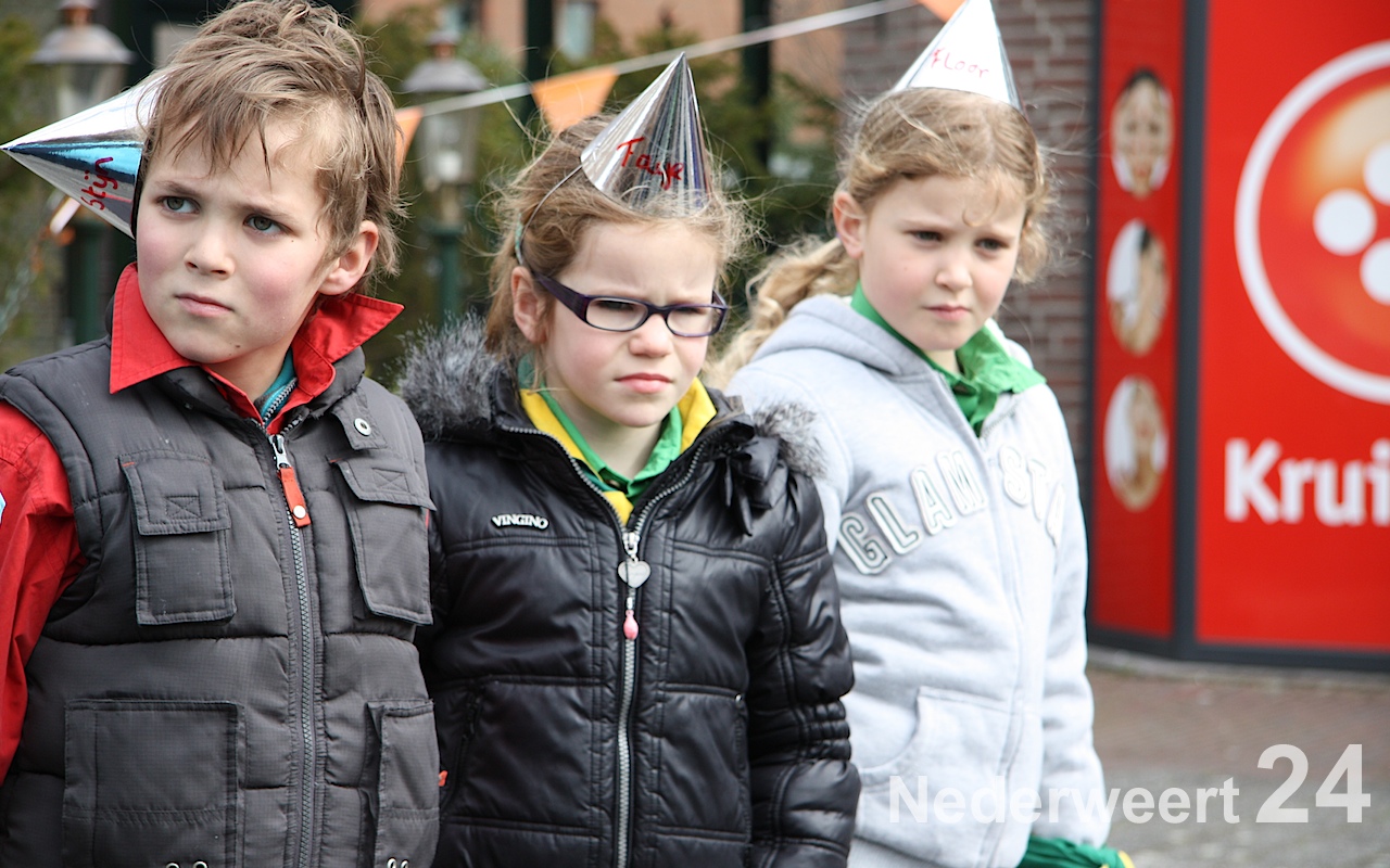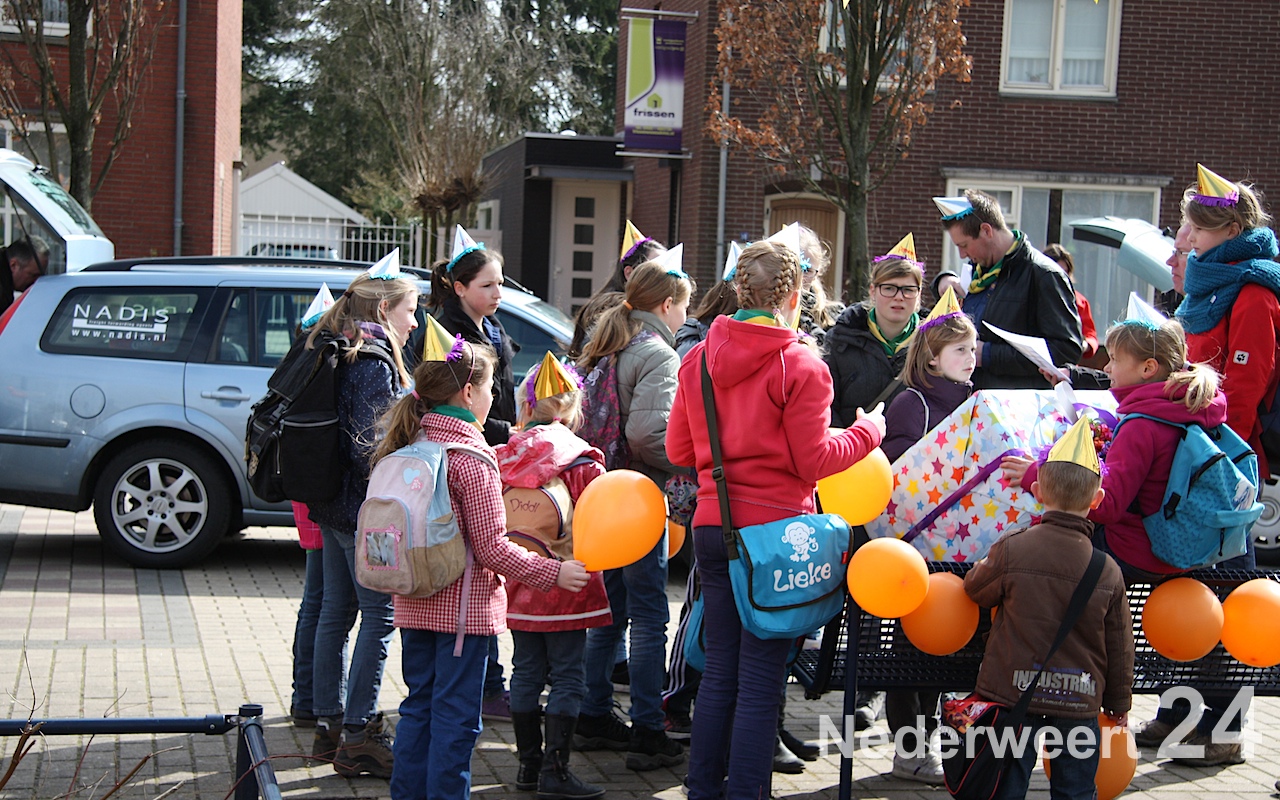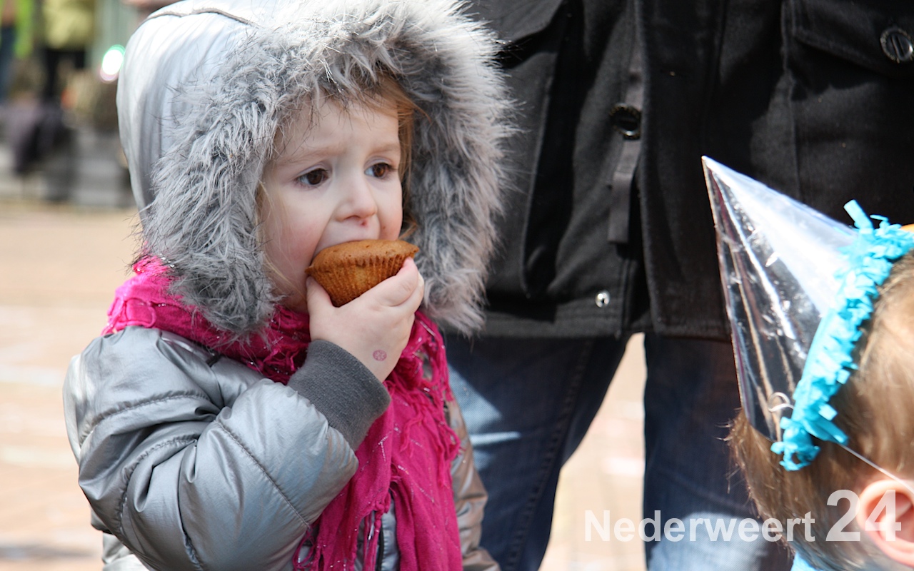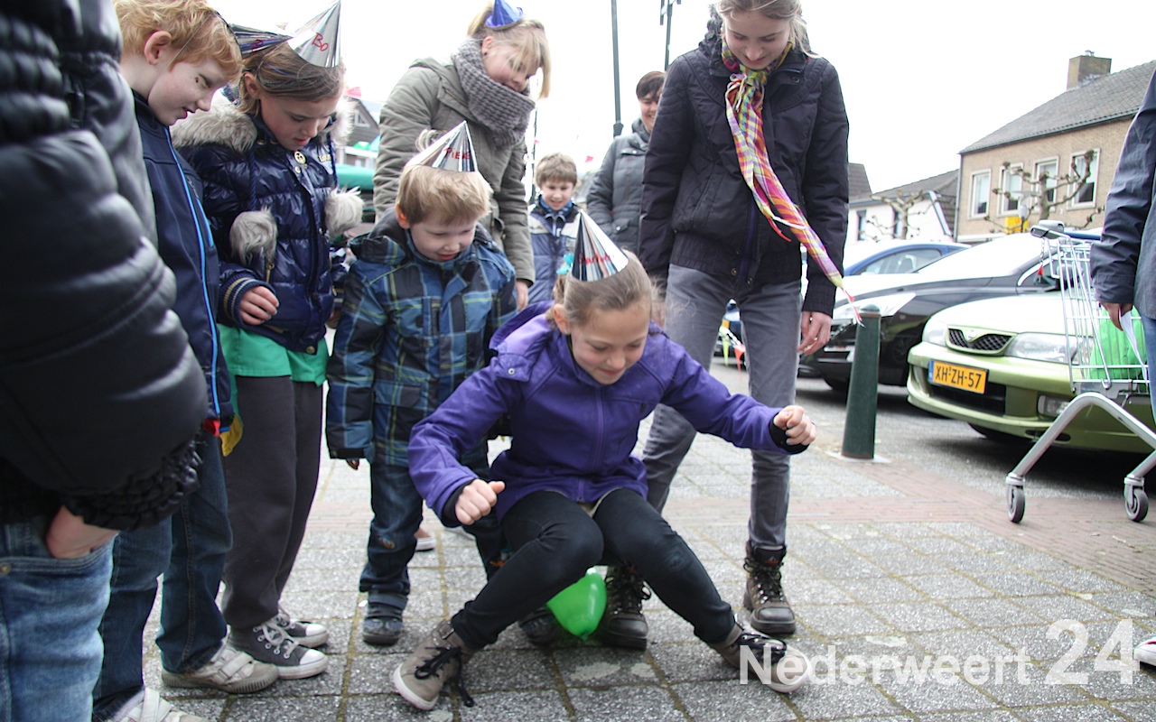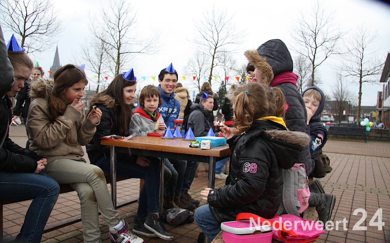 Om 14:30 waren alle leden weer terug op het Raadhuisplein voor de grote eind show, waarbij alle pappa’s, mamma’s, broertjes, nichtjes, buurjongetjes en klasgenootjes ook welkom waren. Het plein was één groot verjaardagspartijtje: ballonnen, feesthoedjes, slingers, maar natuurlijk ook: cake!