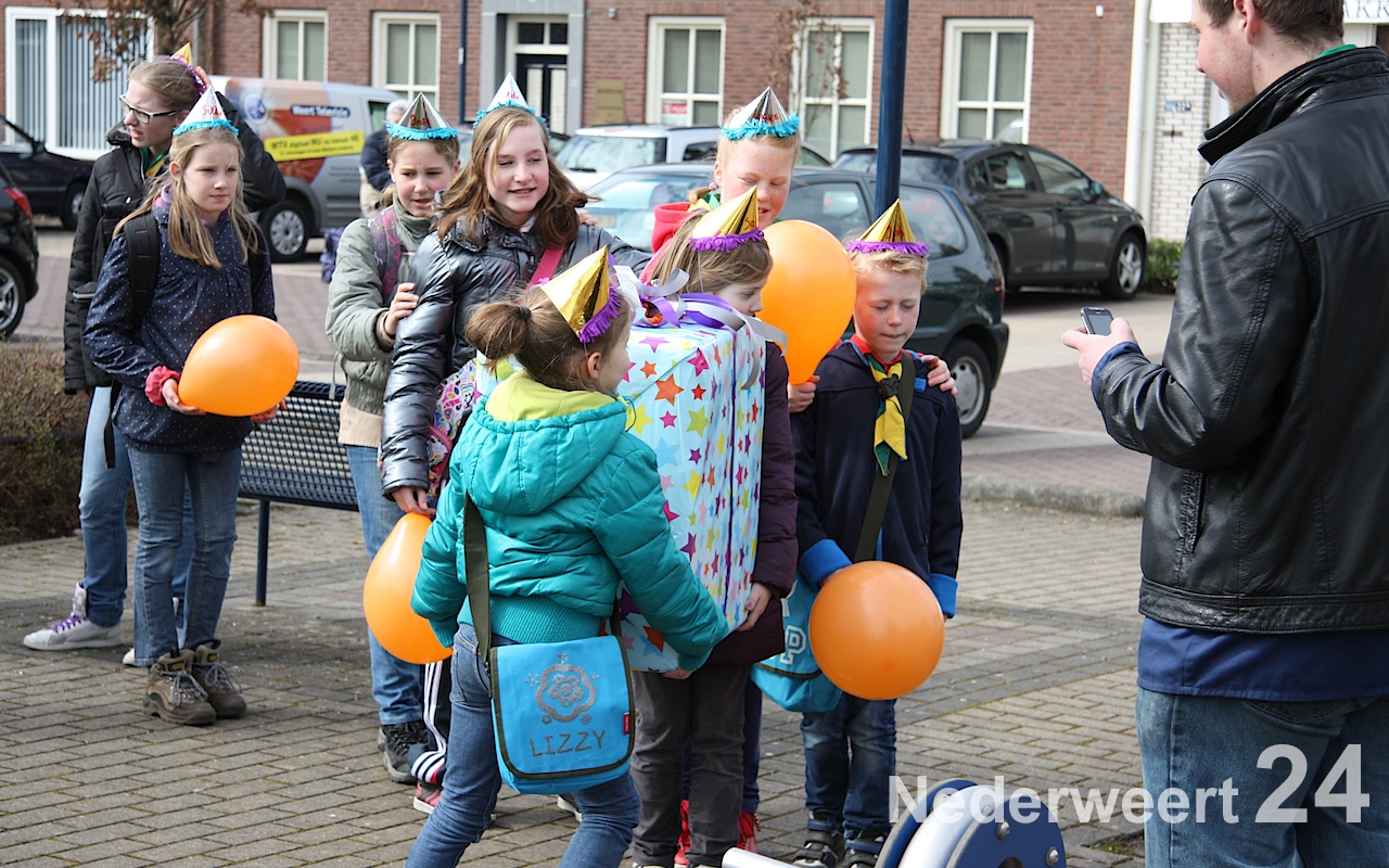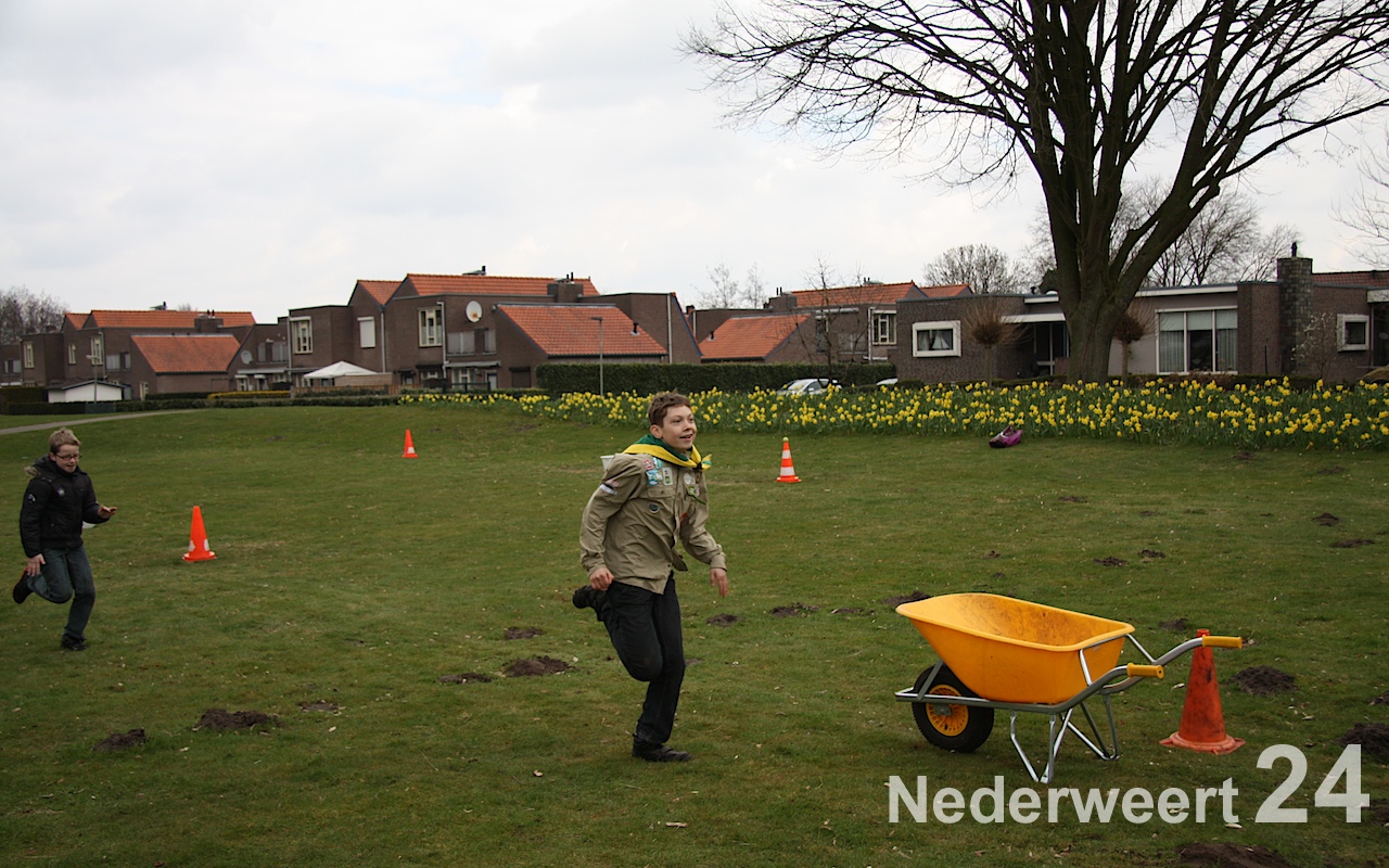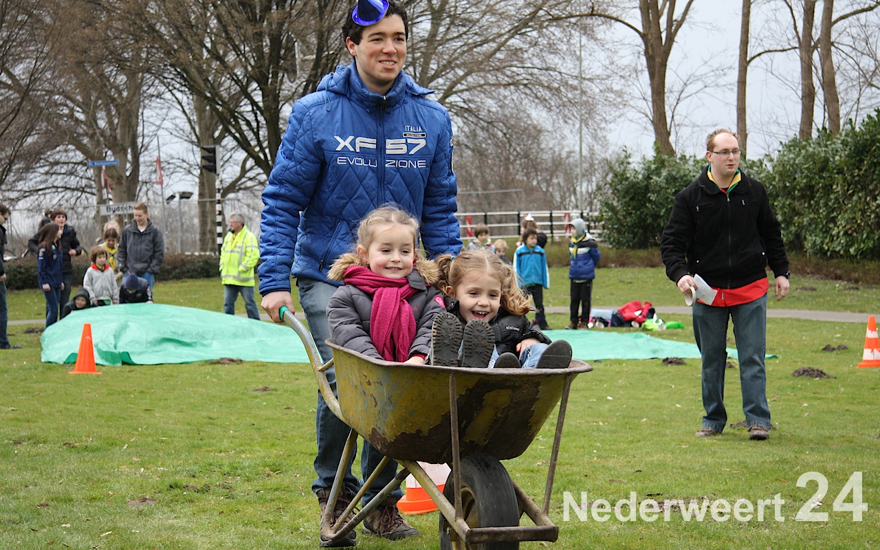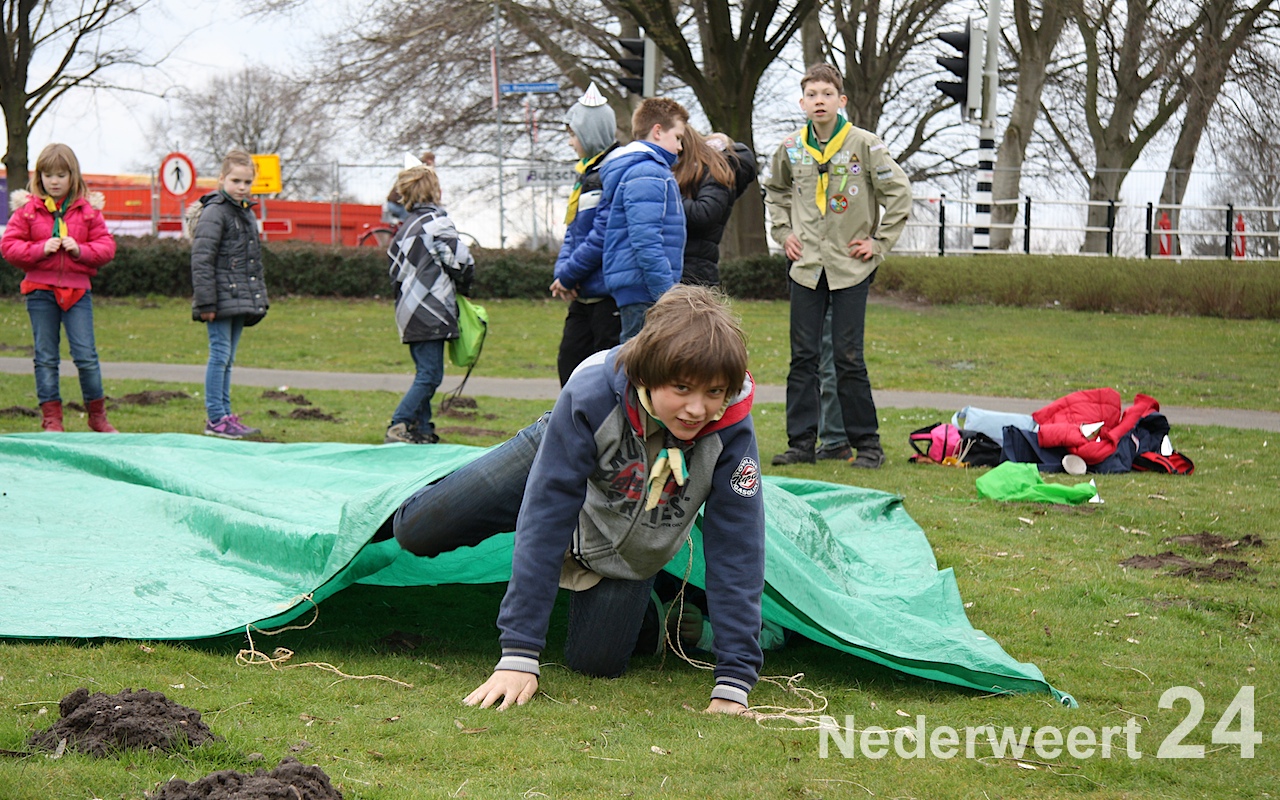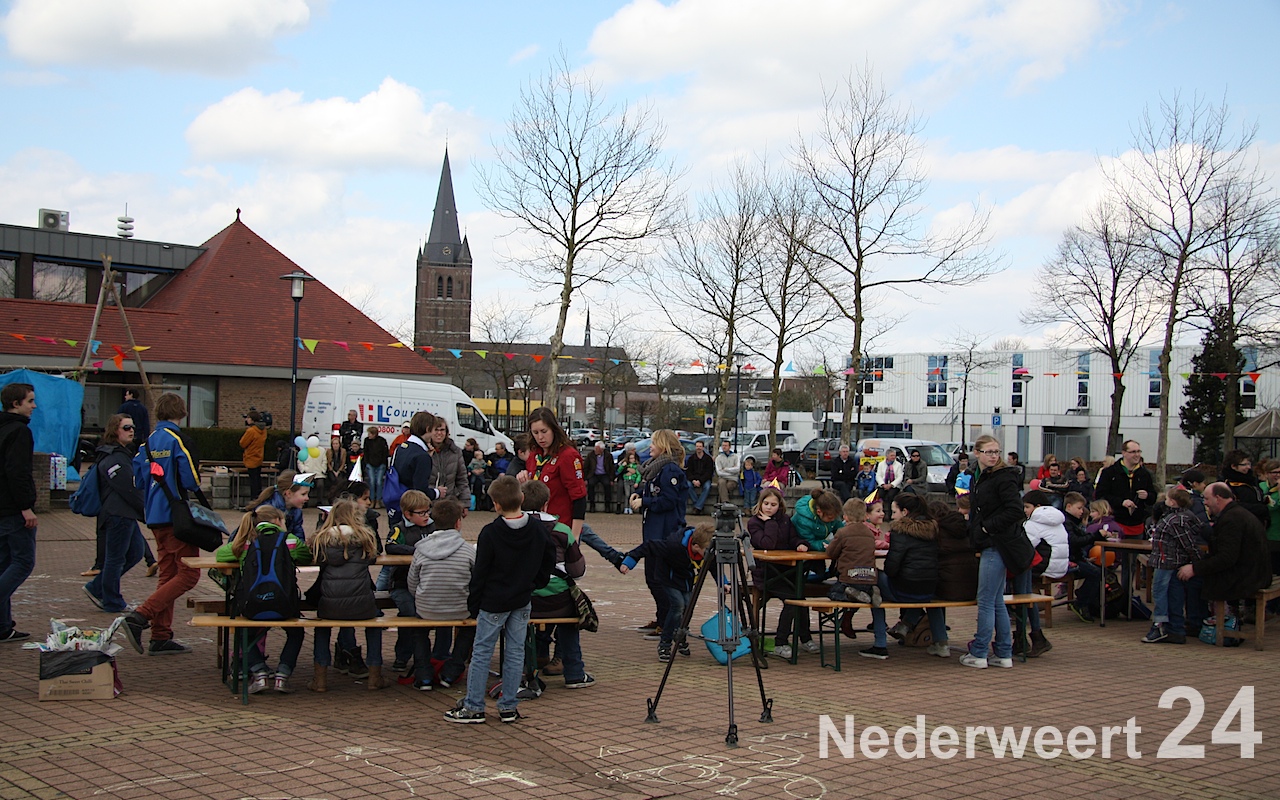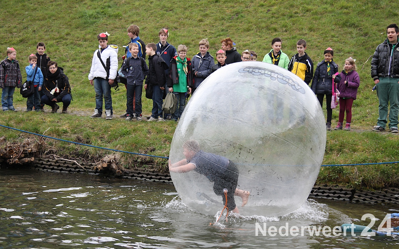 Vanaf 11:00 uur waren ze op het Raadhuisplein in de weer met een stoepkrijtspel, zochten ze hun weg in een levensgrote doolhofpuzzel op het Sint Antoniusplein en was het oppassen geblazen voor knallende ballonnen bij het Lambertushof. Maar ook in Budschop kwam je ze tegen: in het Julianapark zag je ze al rennend over een sportief parcours, en in het kanaal bij waterscoutinghonk de Thuishaven trotseerden de scouts de natuurwetten door in een grote opblaasbare bal over het water te wandelen!