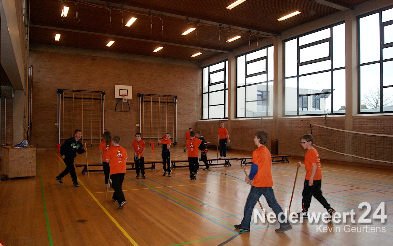 Het startschot werd gegeven op basisschool De Schrank in Ospel. De groepen 5 en 6 deden actief mee aan sport en spel in het kader van de Koningsspelen.