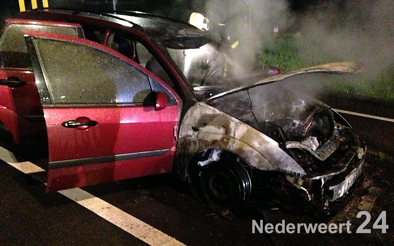 De auto is volledig uitgebrand. Er raakte niemand gewond.