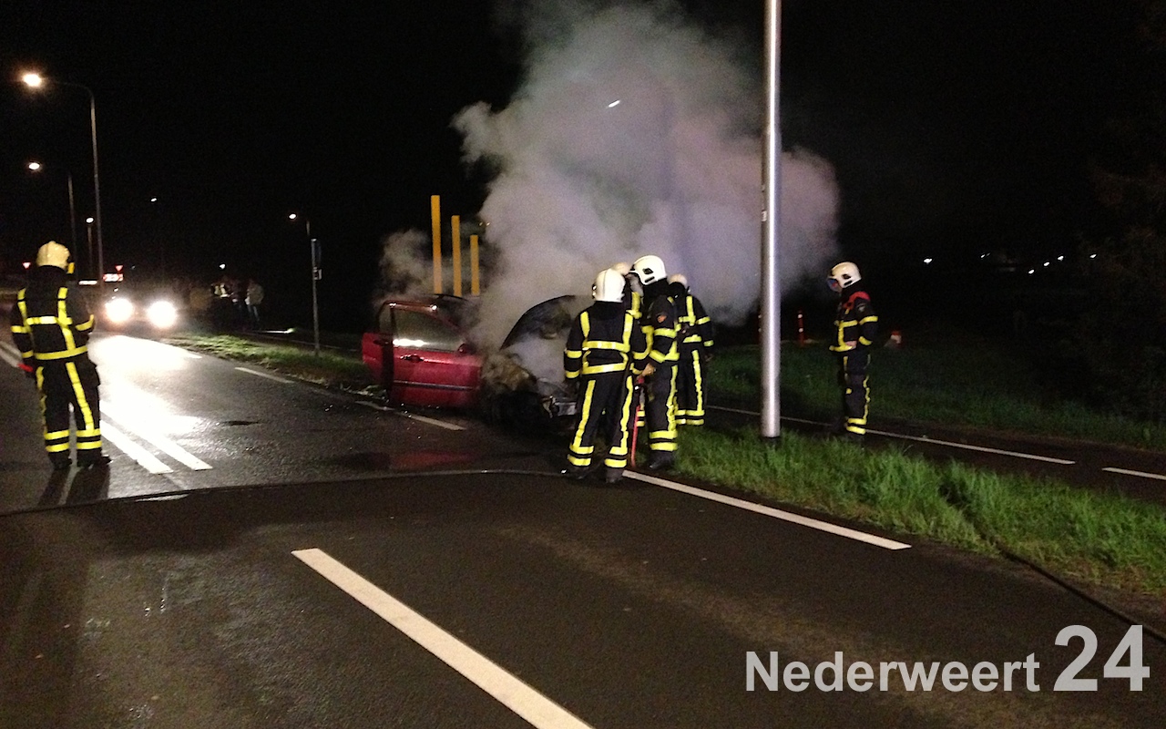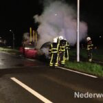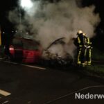 De brandweer werd rond kwart over twee gealarmeerd voor de autobrand. Twee personen waren uit de auto en hadden al hun spullen veilig kunnen halen.
