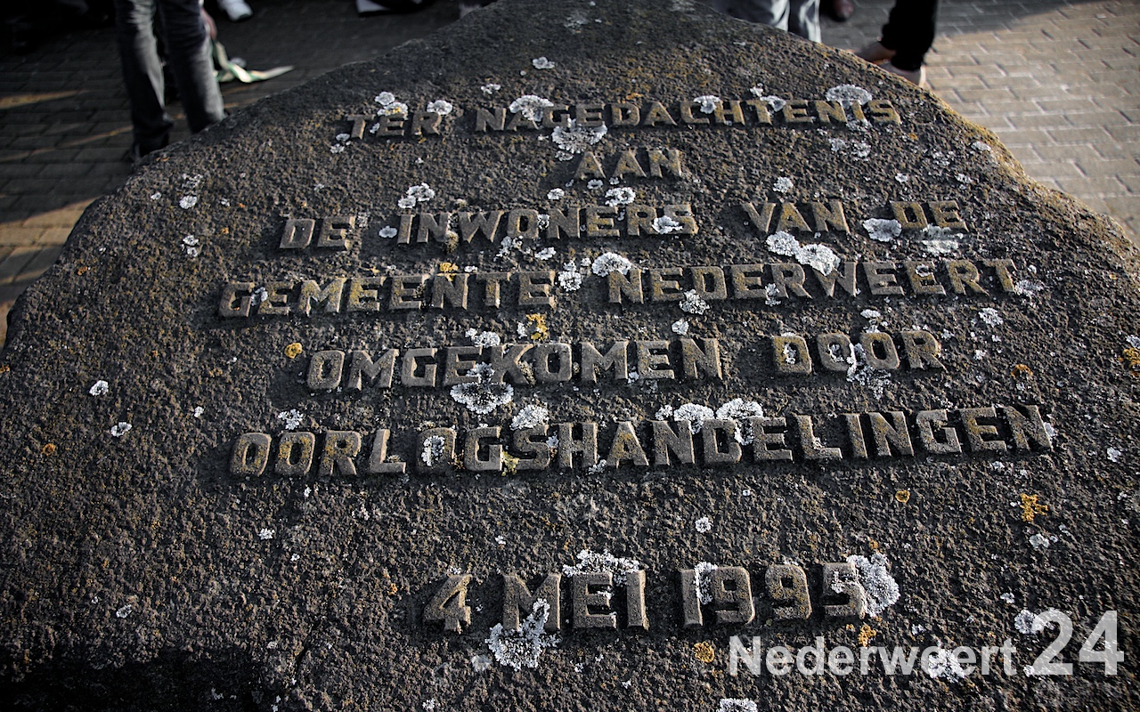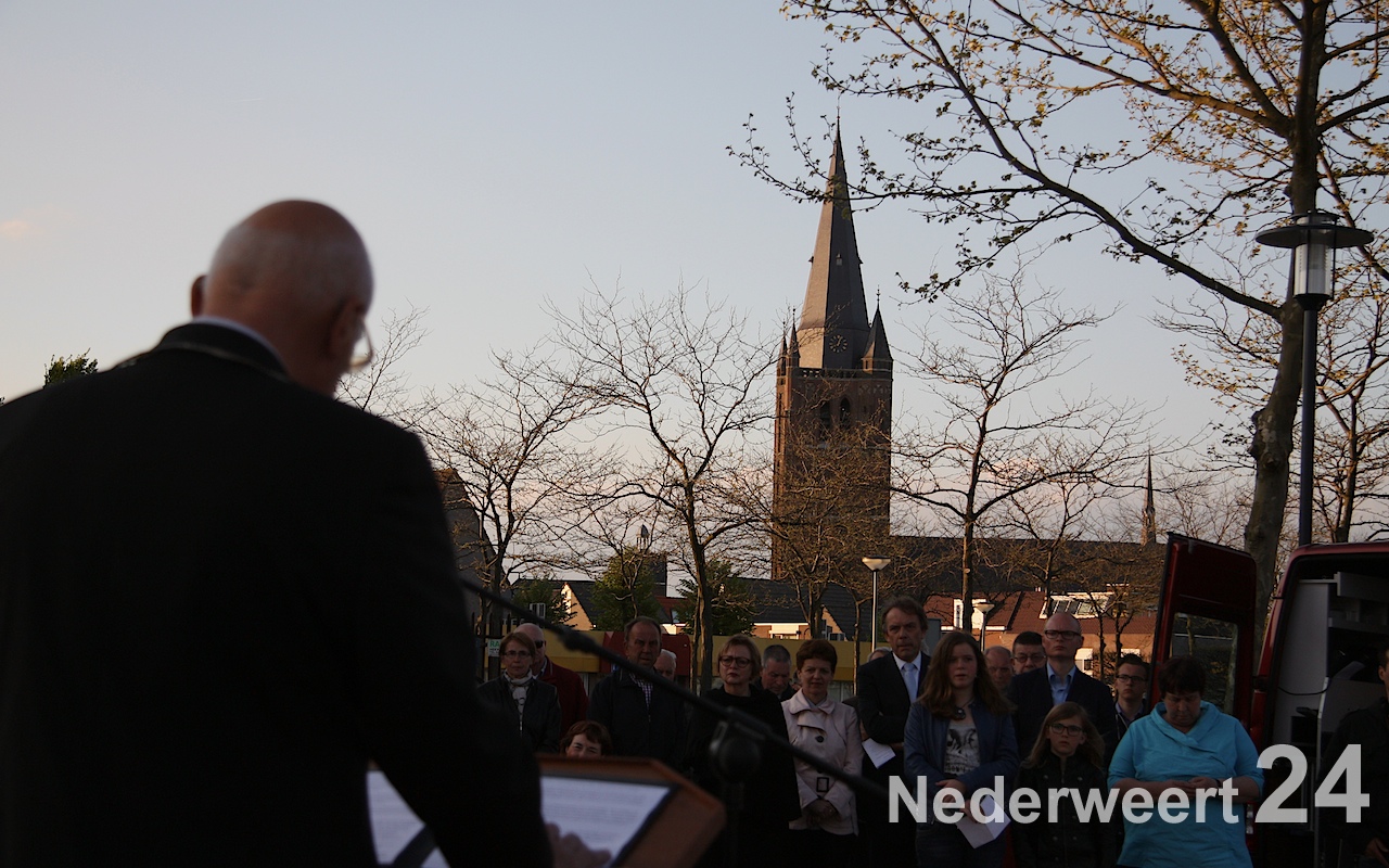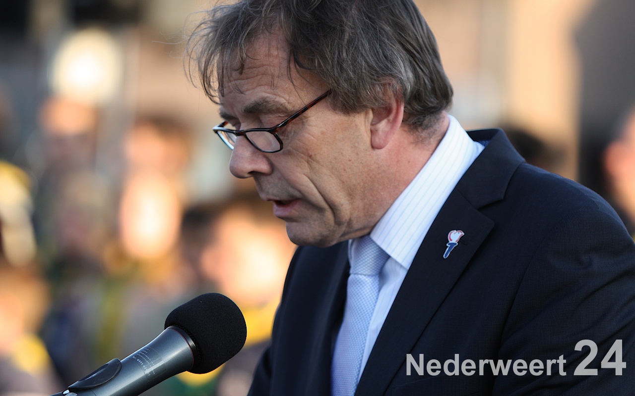 Op het Raadhuisplein volgde een toespraak van de voorzitter van het 4 mei comité. Om 8 uur was het 2 minuten stil gevolgd door een woord van burgemeester Evers en een gebed van pastoor Koumans. Er werden 4 kransen gelegd. Een namens het gemeentebestuur, een namens de Bond van Wapenbroeder, een namens de Nederweerter jeugd en een namens het 4 mei comité.