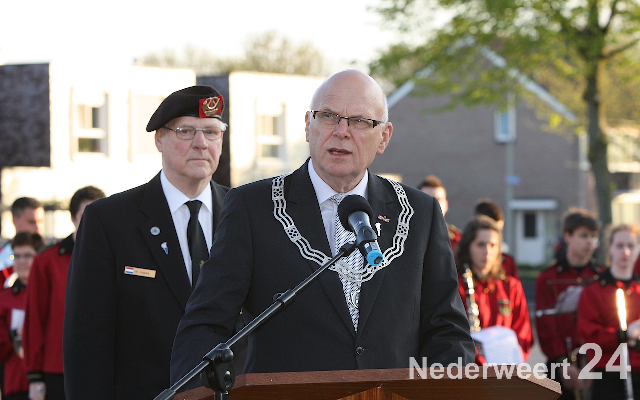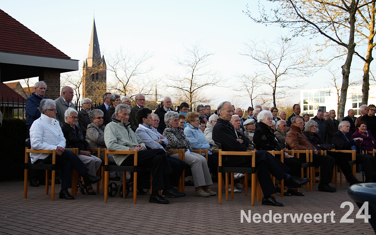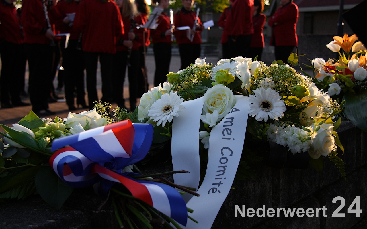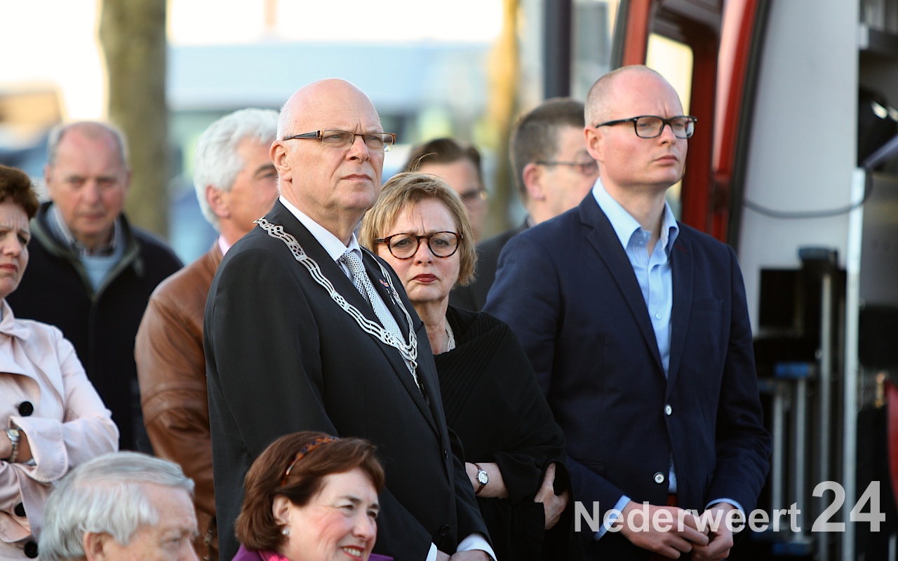 Op het Raadhuisplein volgde een toespraak van de voorzitter van het 4 mei comité. Om 8 uur was het 2 minuten stil gevolgd door een woord van burgemeester Evers en een gebed van pastoor Koumans. Er werden 4 kransen gelegd. Een namens het gemeentebestuur, een namens de Bond van Wapenbroeder, een namens de Nederweerter jeugd en een namens het 4 mei comité.