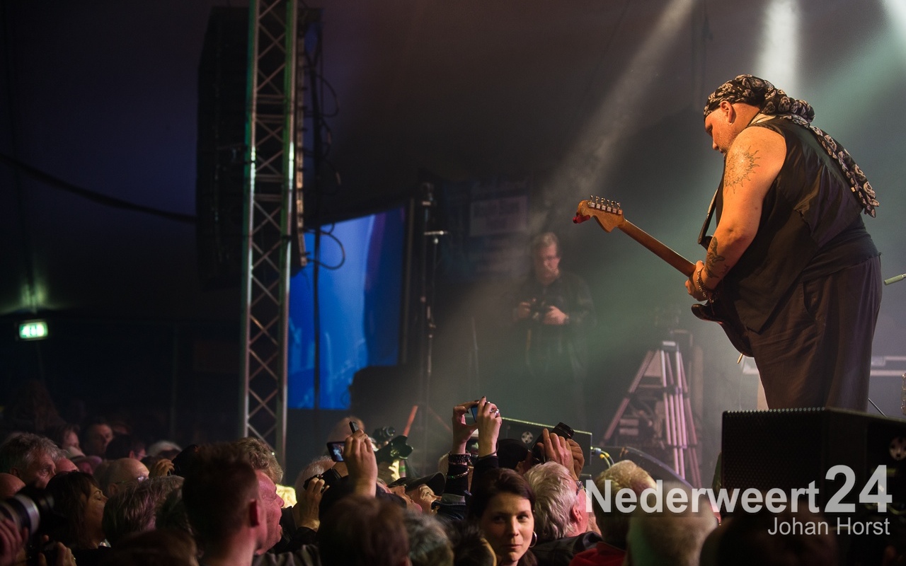 De Reverend Peyton’s Big Damn Band mocht het spits afbijten op het hoofdpodium nadat Burgemeester Henk Evers van Nederweert de aftrap had gegeven. Het was de eerste officiële gelegenheid van onze burgervader na zijn kortstondige opname in het ziekenhuis voor een operatie. Tijdens zijn ziekte oefende hij, als Bluesliefhebber, o.a. “I am a lonely Man” van Sonny Boy Williamson.
