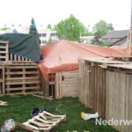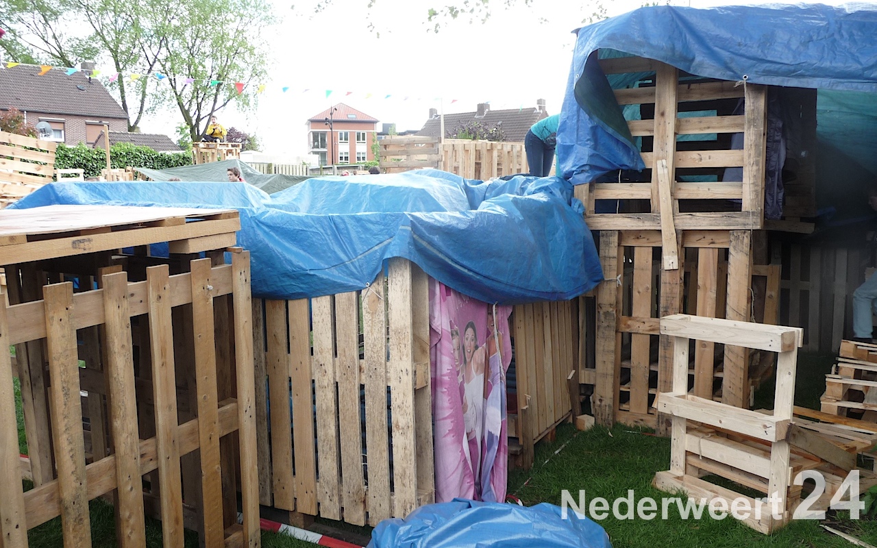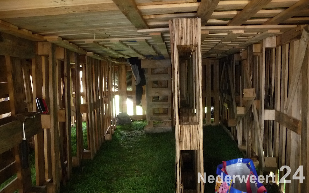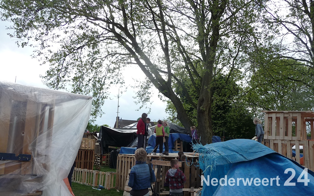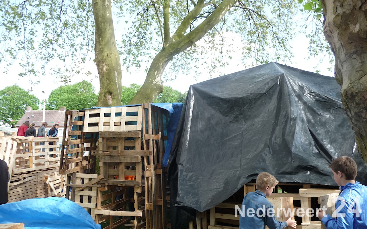 Afgelopen donderdag zijn de kids onder een stralende zon begonnen met het timmeren van hun eigen woning cq. slaapplekje. De kinderen hebben zich helemaal uit kunnen leven en hebben prachtige bouwwerken gemaakt. Het weer was vandaag helaas niet zo goed en de verwachtingen voor vanavond al helemaal niet. Daarom heeft de organisatie besloten de kinderen vannacht binnen te laten slapen.