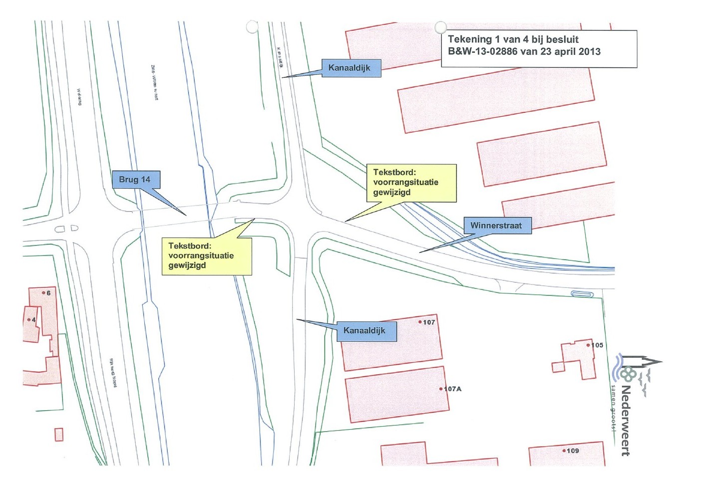 Weggebruikers die regelmatig via brug 14 naar Ospel rijden zullen in de toekomst moeten wennen aan een gewijzigde voorrangsituatie. In de huidige situatie heb je op dit traject op alle aansluitingen voorrang tot aan de Kuilstraat in Ospel. Daarna worden alle kruispunten gelijkwaardig.